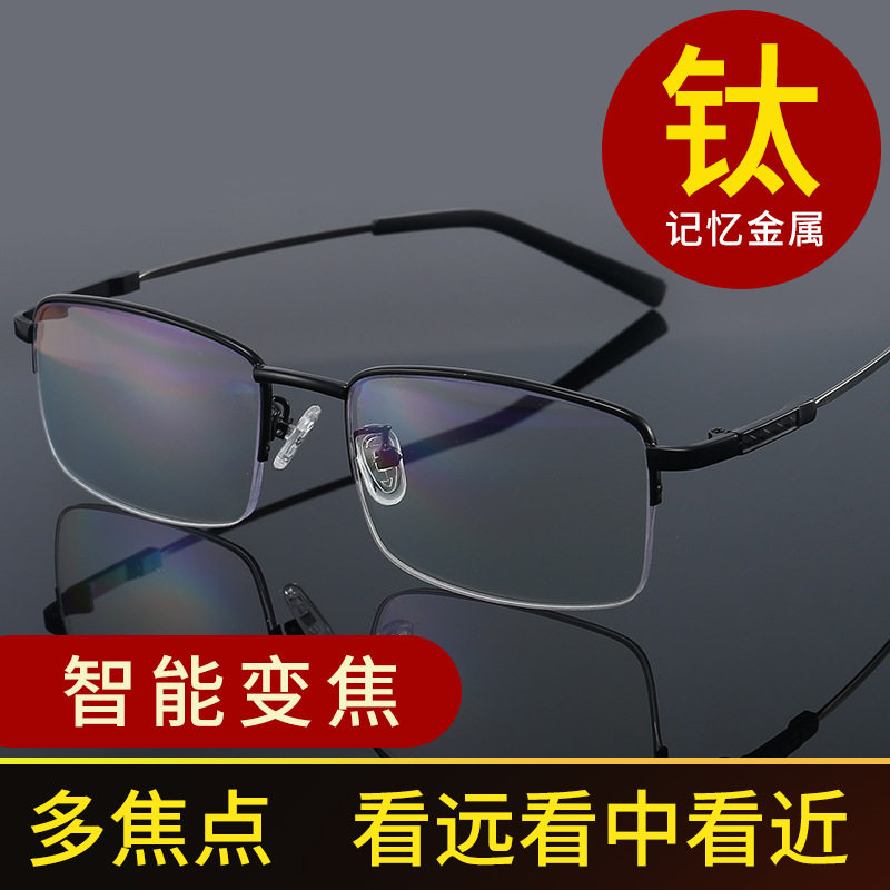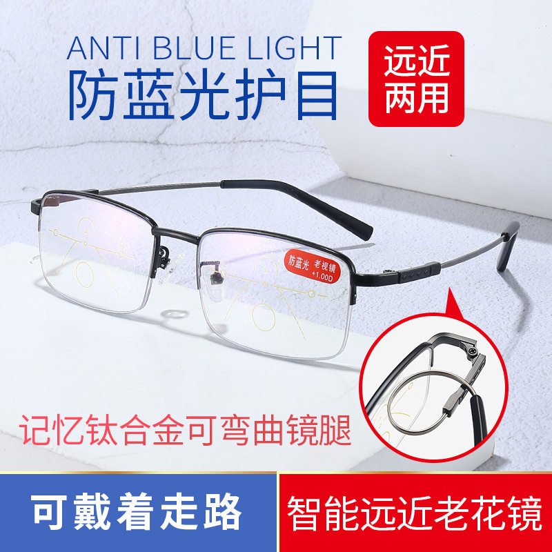 记忆架老花镜男远近两用防蓝光双光智能自动变焦渐进多焦点眼镜女