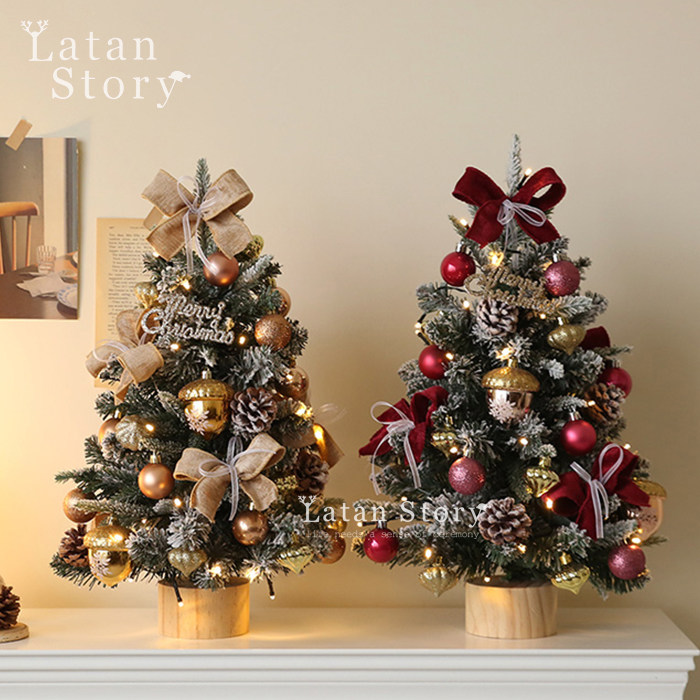 迷你圣诞树2025新款ins风仿真桌面家用套餐小型diy摆件圣诞节装饰