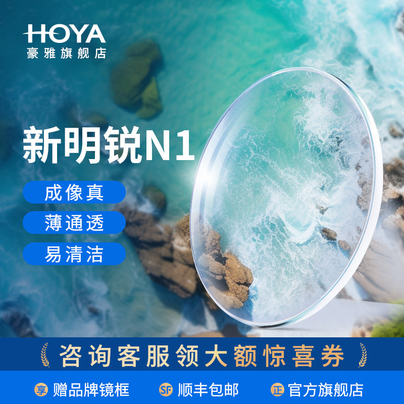 豪雅新明锐N1非球面镜片防蓝光近视眼镜1.67超薄变色专业配镜耐磨
