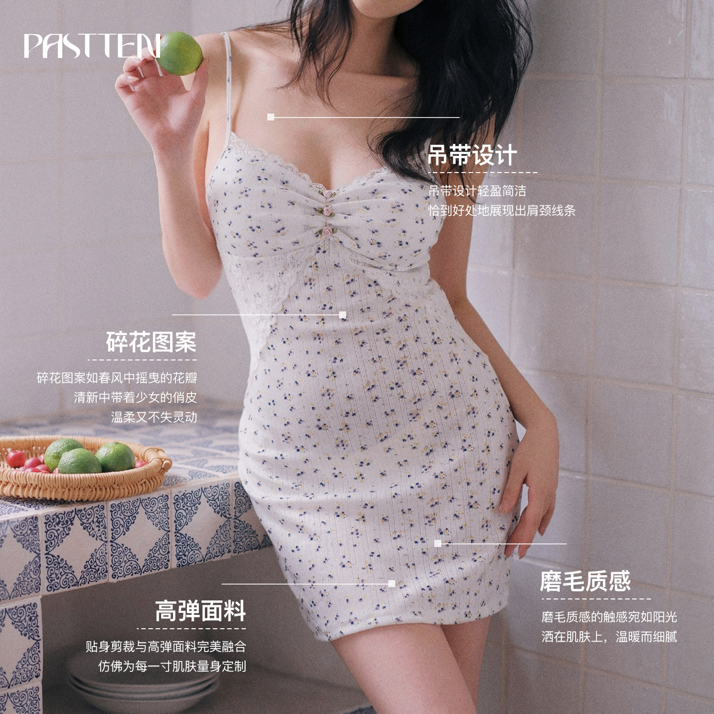 管阿姨十点半巴士A011性感睡衣碎花法式吊带睡裙甜美修身连体衣