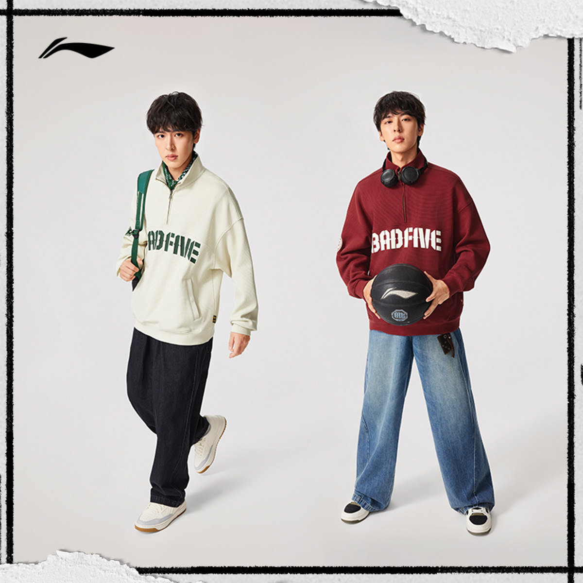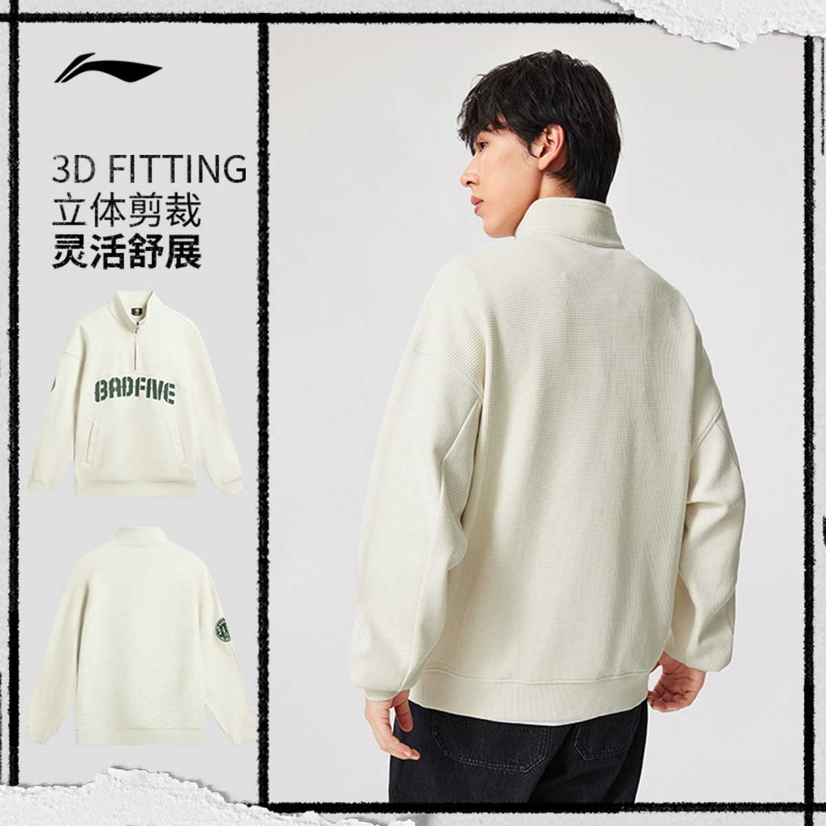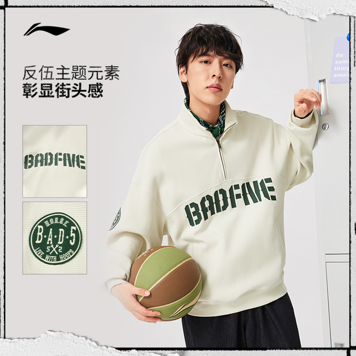 李宁反伍BADFIVE卫衣男春季2026新款男装套头衫立领上衣运动长袖
