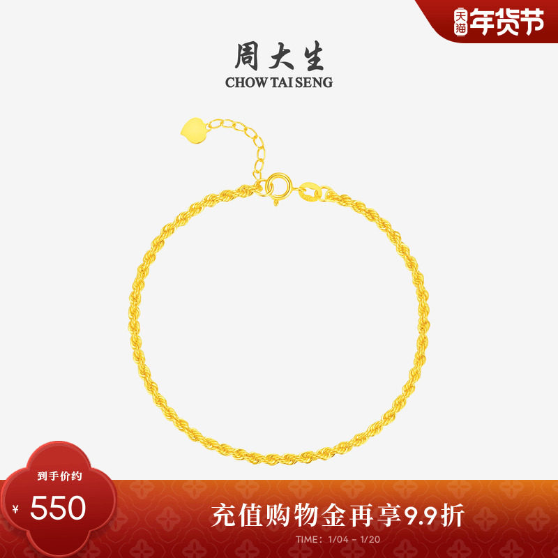 周大生黄18K金手链ins简约水波纹麻花链叠戴素链细链多款新年礼物
