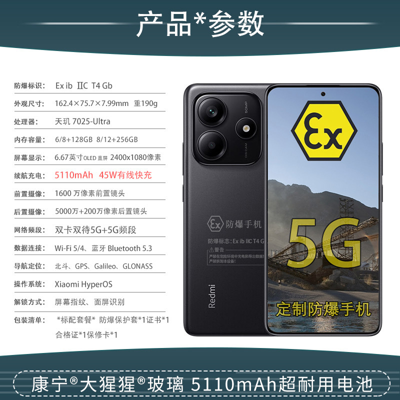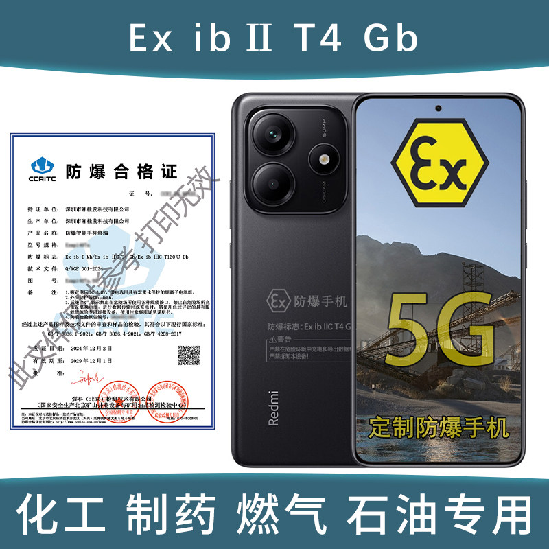 小米红米REDMI Note14 5G IP64金刚品质大电池 定制防爆手机 化工厂医药本安EX工业石油库天然气带证书