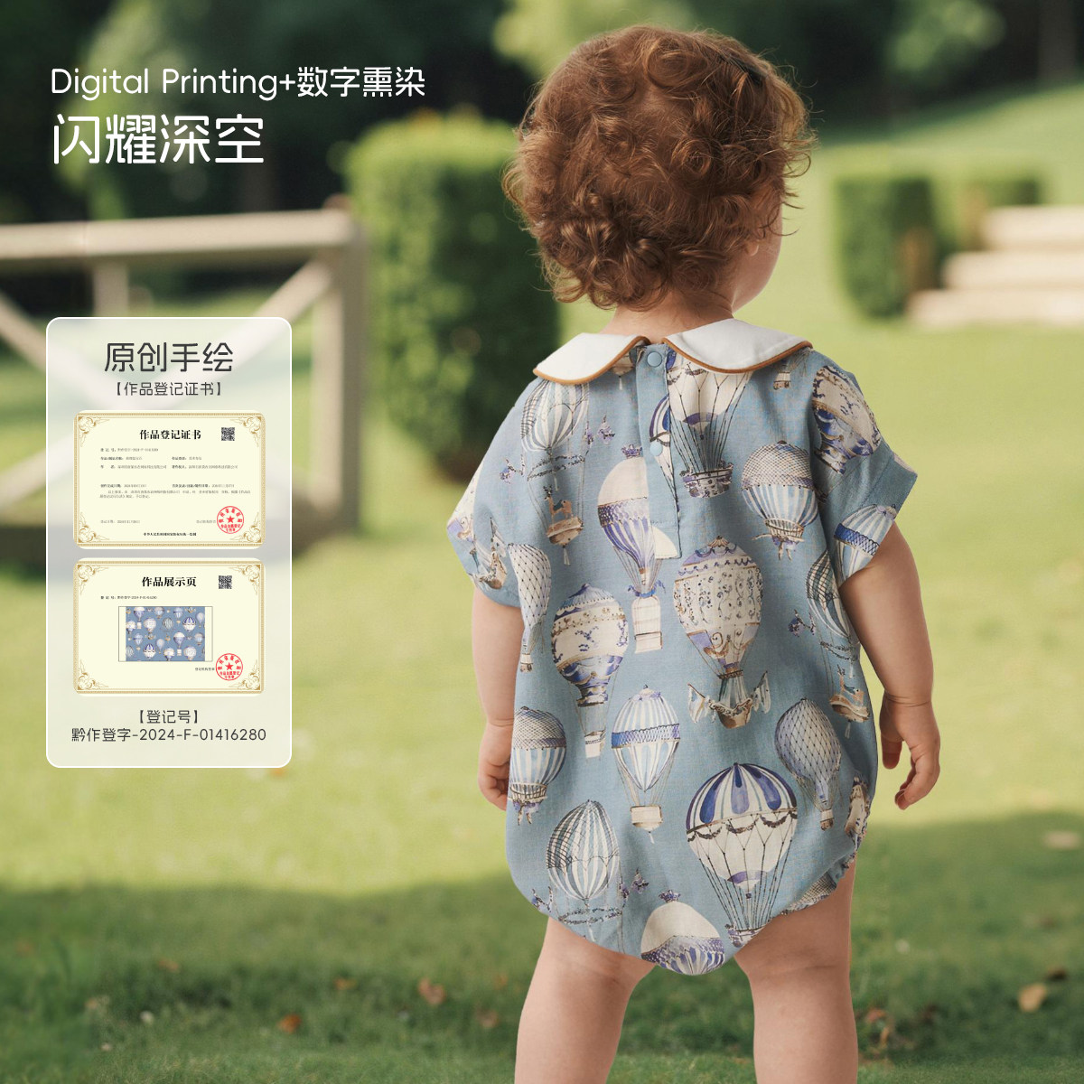 [璀璨蓝宝石]aqpa爱帕婴儿短袖包屁衣夏季纱布薄款宝宝连体衣哈衣