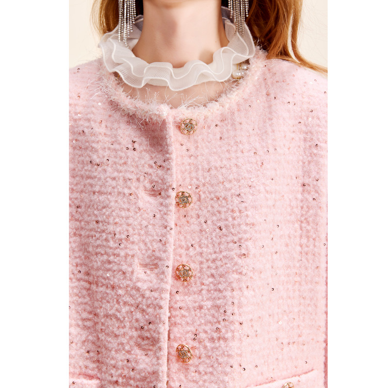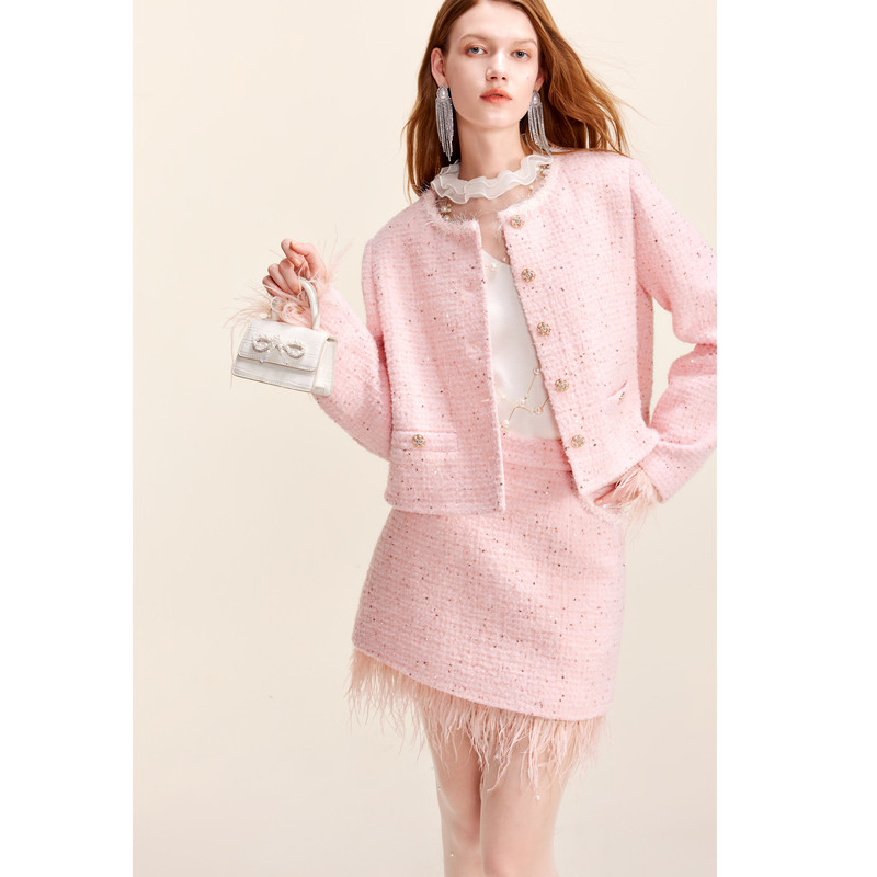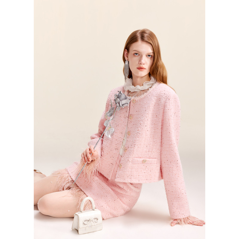 可可尼COCOON2025冬季新款新年氛围感穿搭粉色小香风时尚套装女