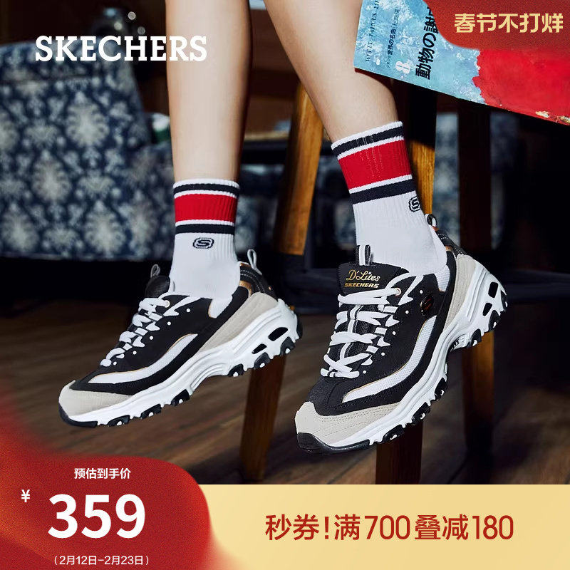 斯凯奇黑白金|春季男女款黑白熊猫经典老爹鞋厚底增高休闲运动鞋
