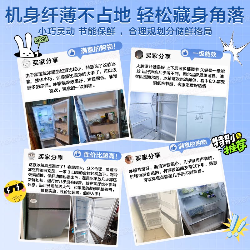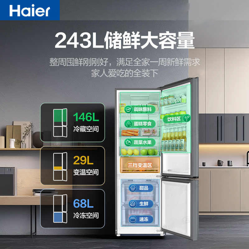 以旧换新补贴海尔电冰箱两门243升226三开门家用小型节能风冷无霜