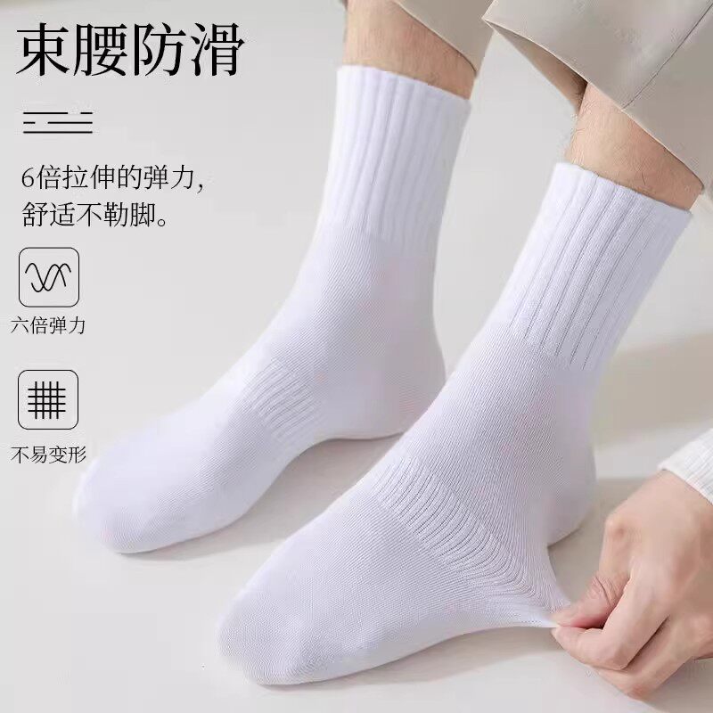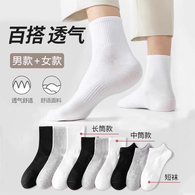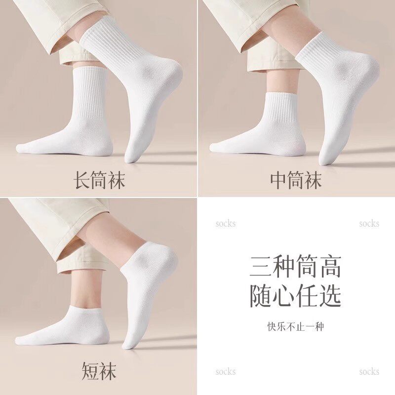 南极人黑色纯棉袜子中筒袜春秋款吸汗防臭运动袜白色长筒袜短筒