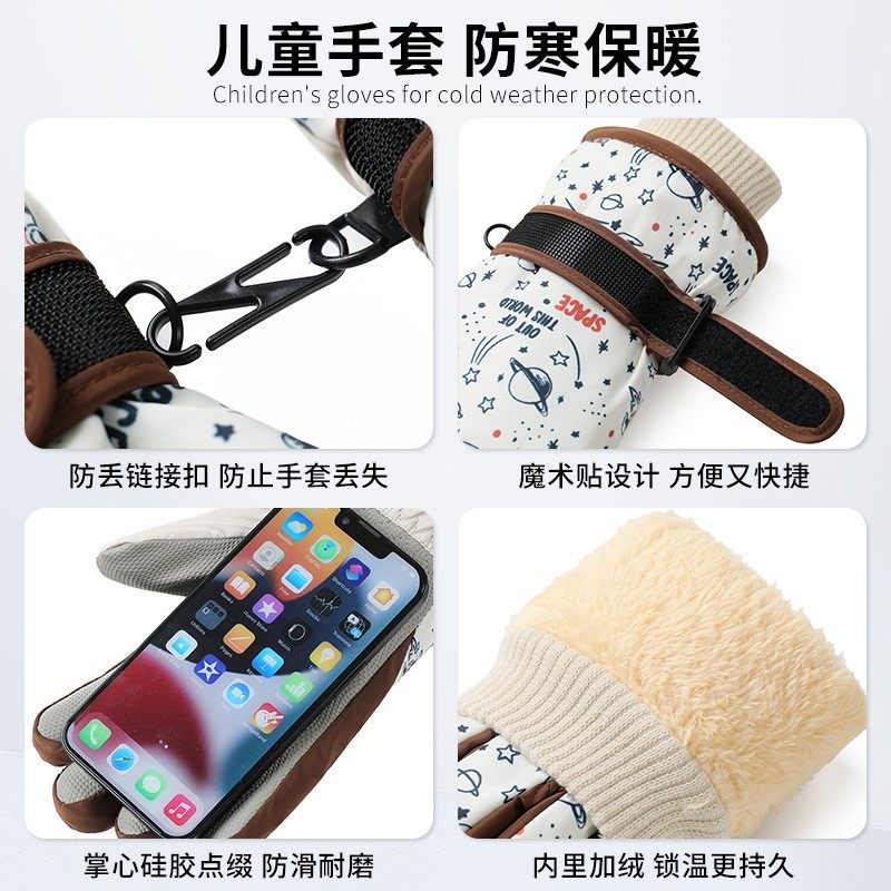 儿童滑雪手套冬季男女大童宝宝加绒加厚玩雪防水防雪手套滑雪装备