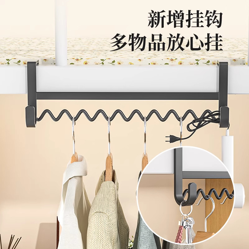 橱柜门后挂钩一排可滑动轨道免打孔粘挂杆神器勺子铲子厨具收纳架