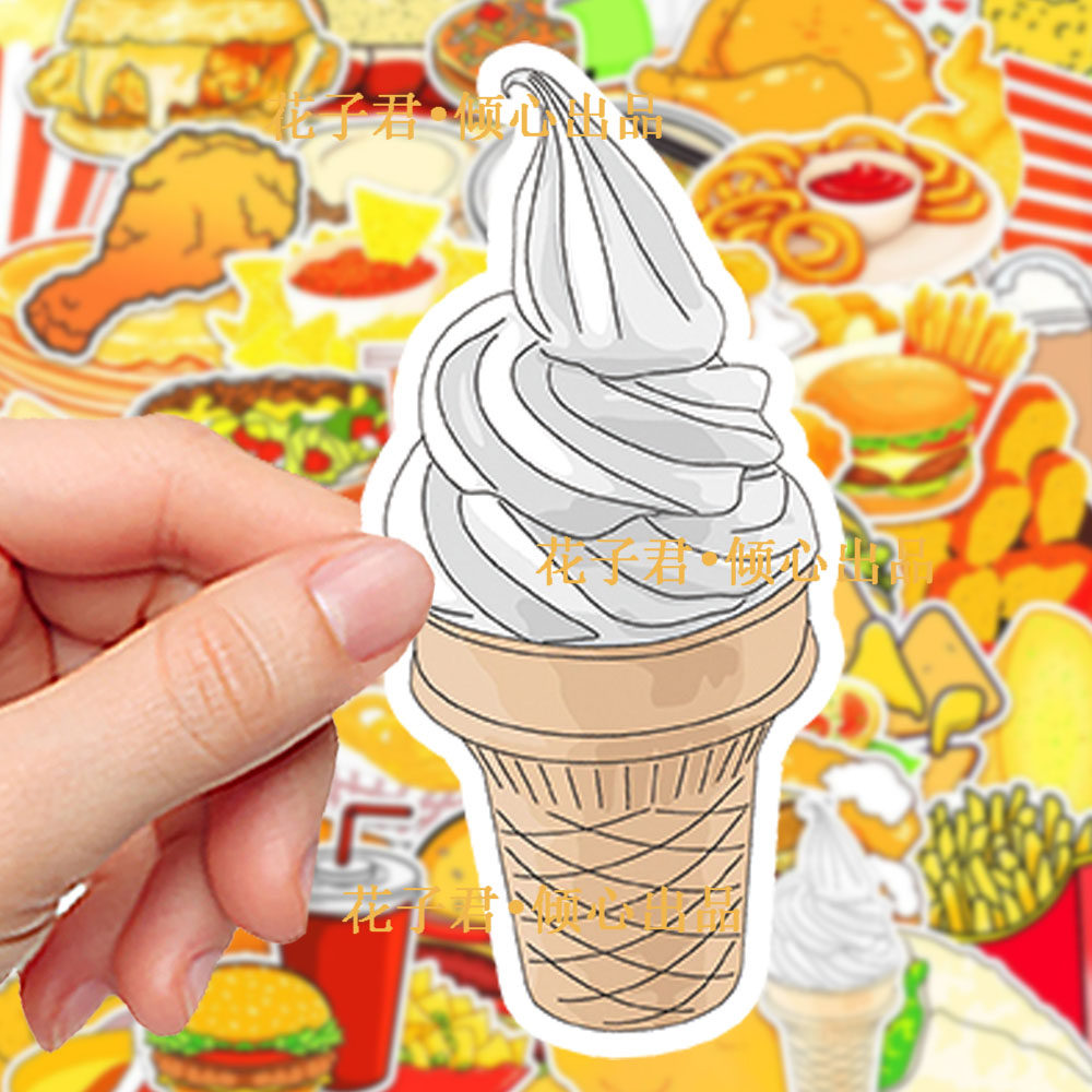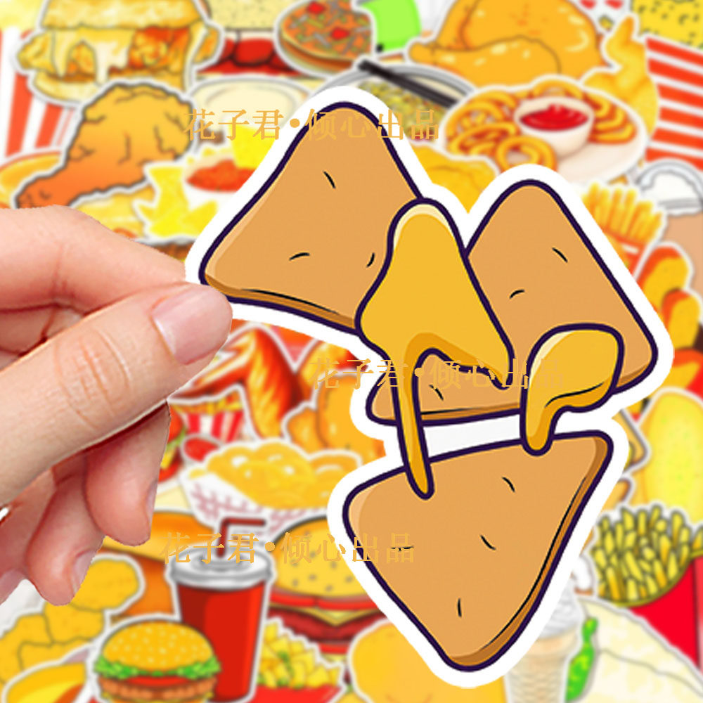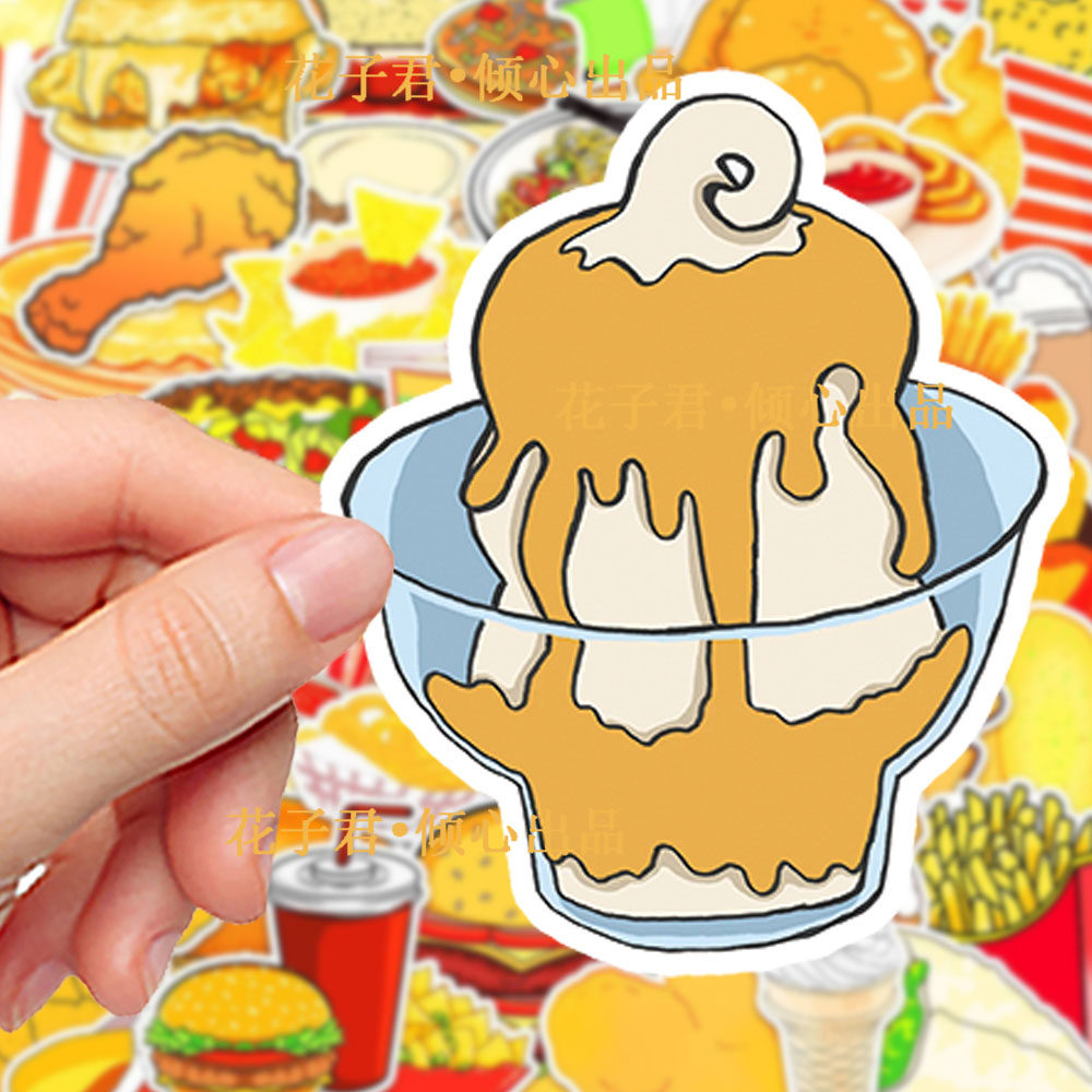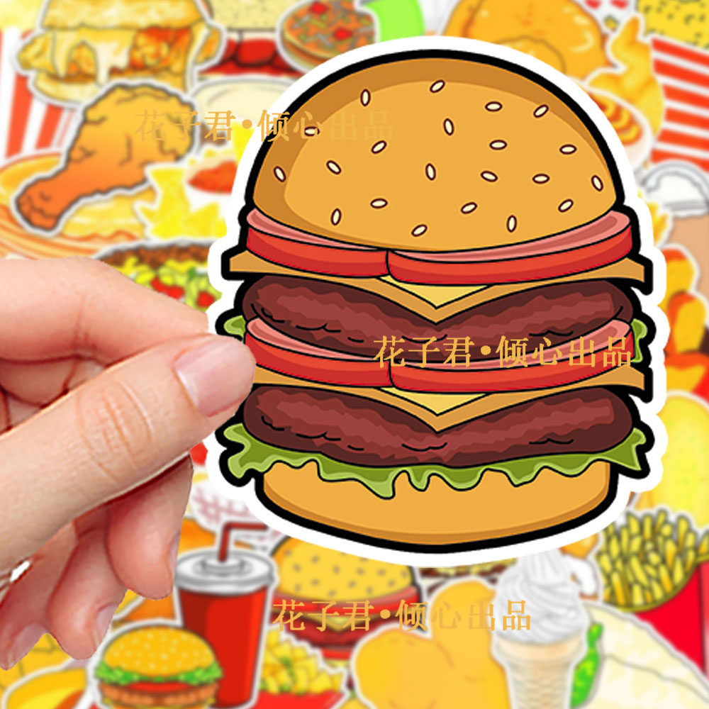 100张卡通食物美食贴纸汉堡薯条鸡腿创意装饰手机壳手账防水贴画