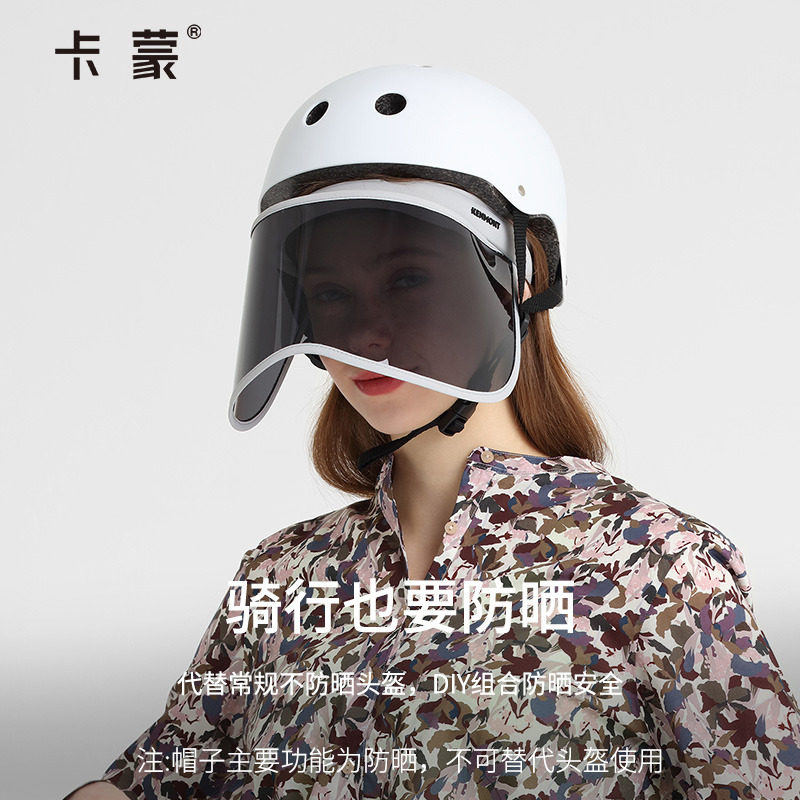 卡蒙硬核防晒骑电动车遮阳面罩女防风防紫外线遮全脸空顶防晒帽