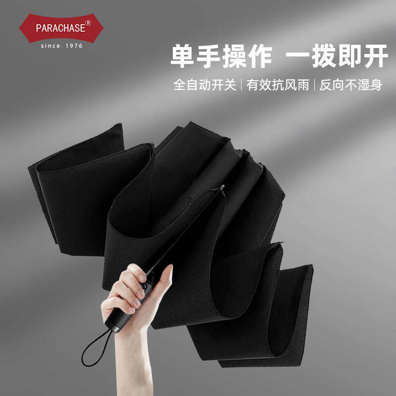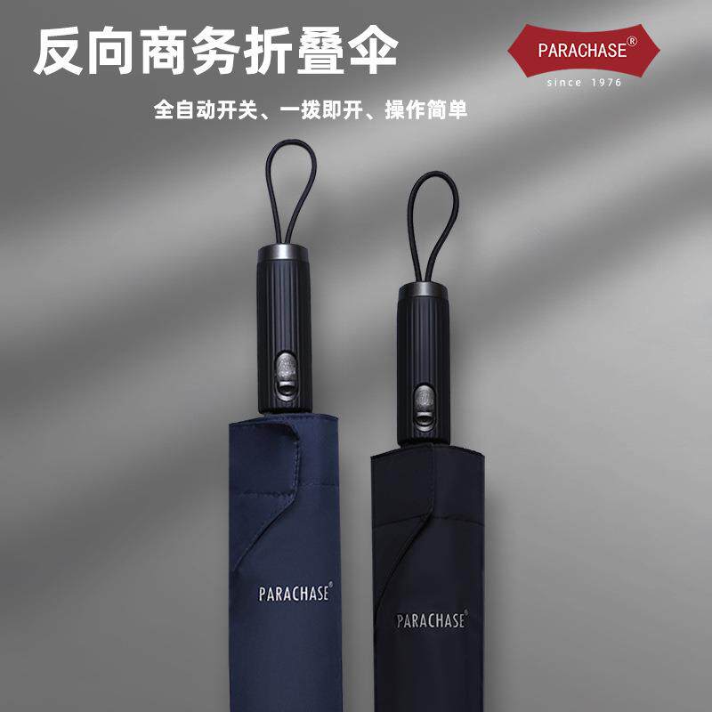 parachase全自动便携反向折叠晴雨两用伞男士商务简约纯色三折伞