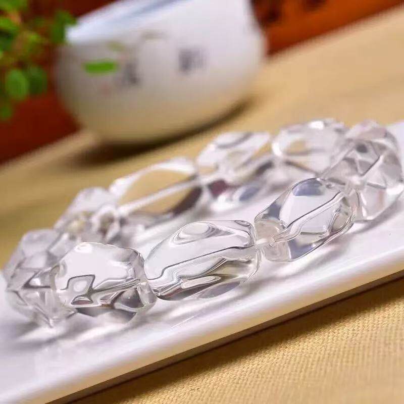 白水晶手链单圈圆珠净体男士女款简约款手串东海水晶随型仿手串