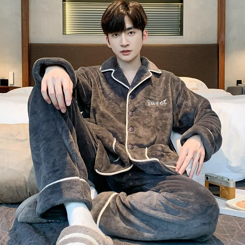 珊瑚绒睡衣男士秋冬款加厚加绒保暖法兰绒青少年冬季家居服男套装