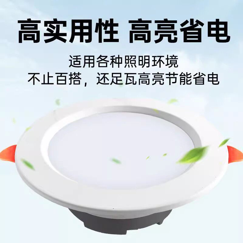 led筒灯嵌入式7w9w4寸12w客厅服装店饭店筒灯孔灯圆洞灯开孔75mm