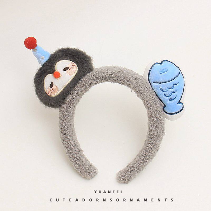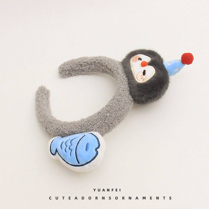 创意企鹅小鱼发箍可爱萌趣毛绒卡通头饰少女拍照洗脸发卡搞怪头箍