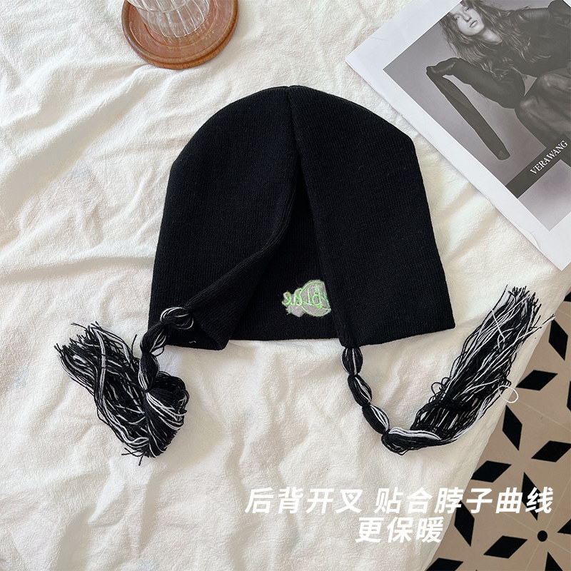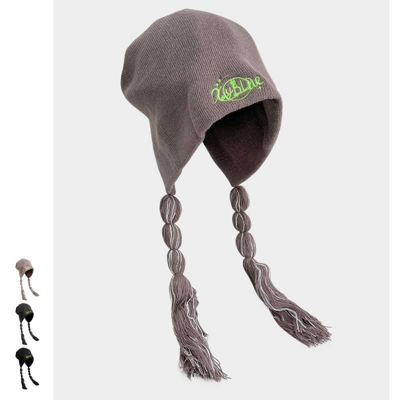 Classy key新加坡设计师联名款复古小众潮辫子针织冷帽护耳毛线帽