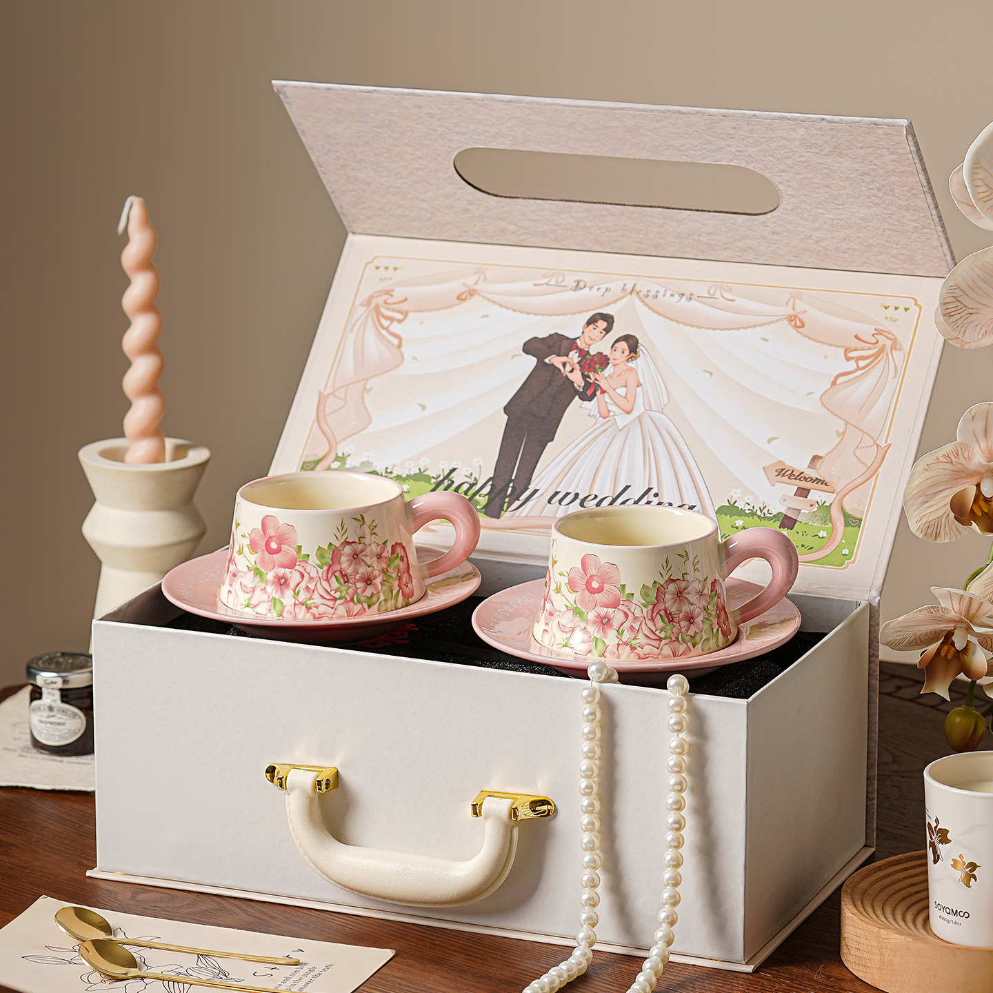 新婚礼物送新娘结婚礼盒结婚礼物餐具礼盒订婚礼物香薰礼盒咖啡杯