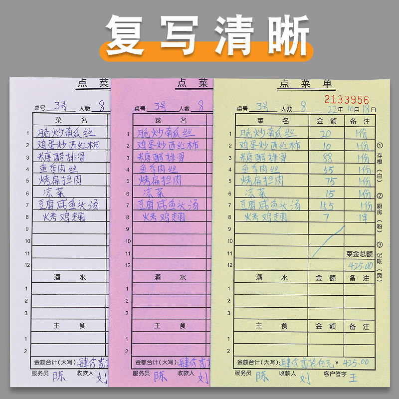 宝兴无碳复写两联三联四联点菜单餐厅饭店专用餐饮单餐馆手写菜单