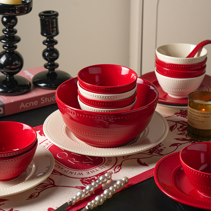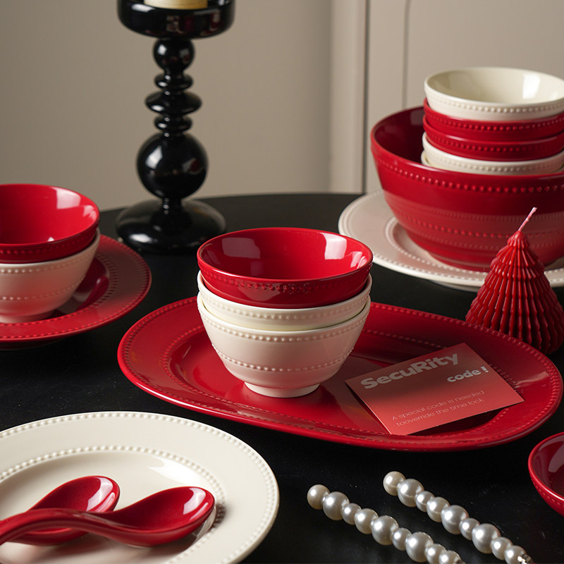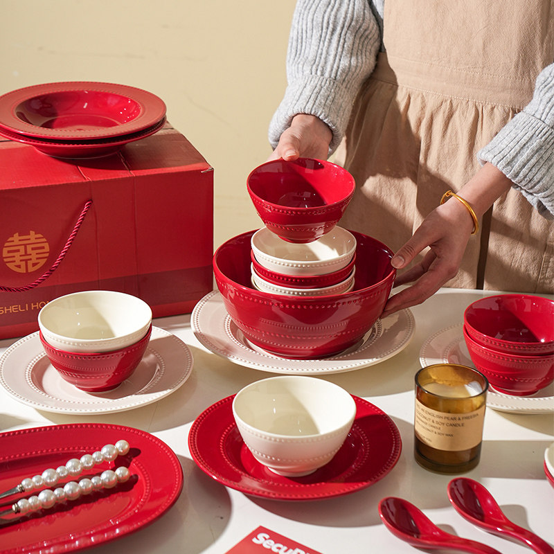舍里高级感红色餐具结婚礼物碗碟套装家用喜碗订婚乔迁碗盘送新人