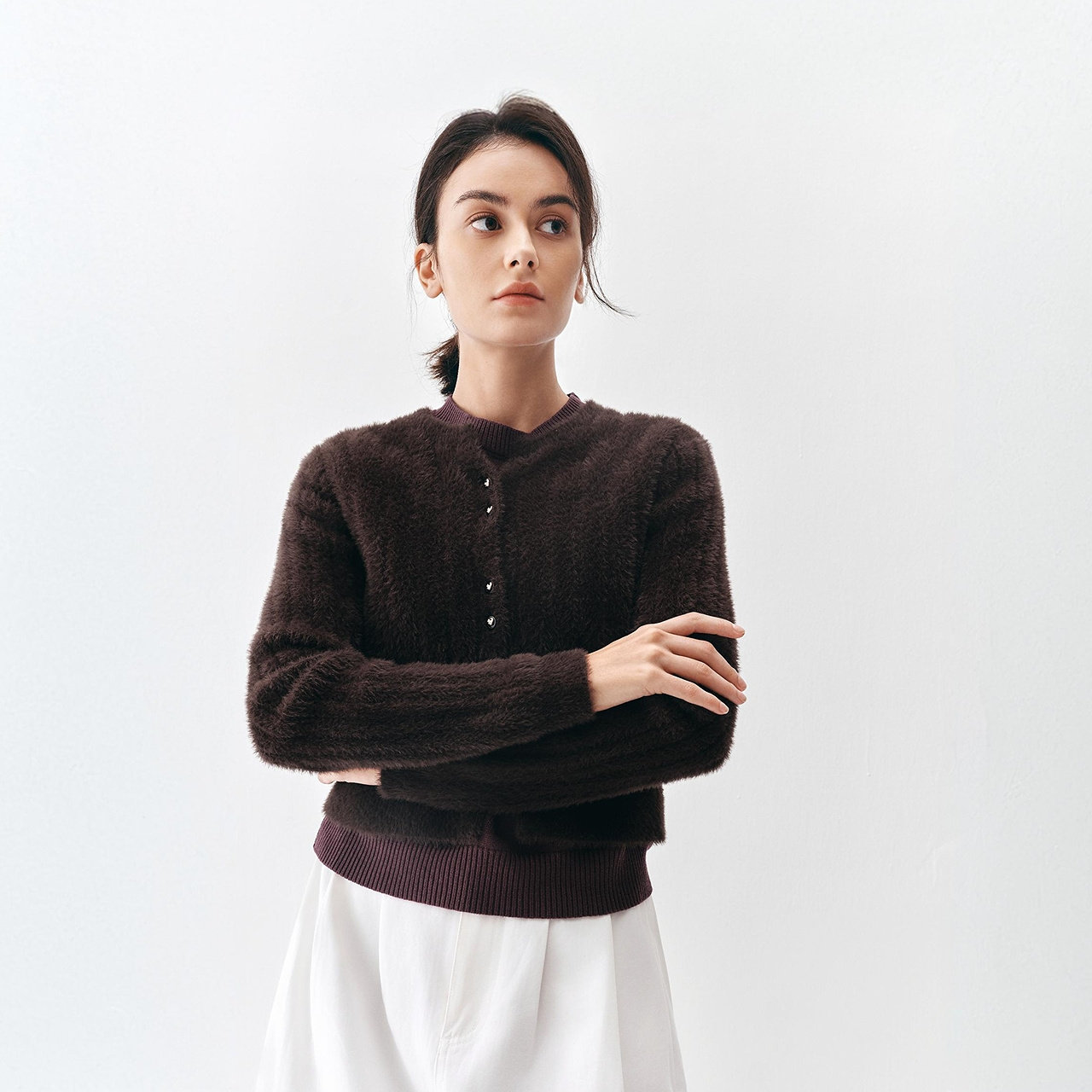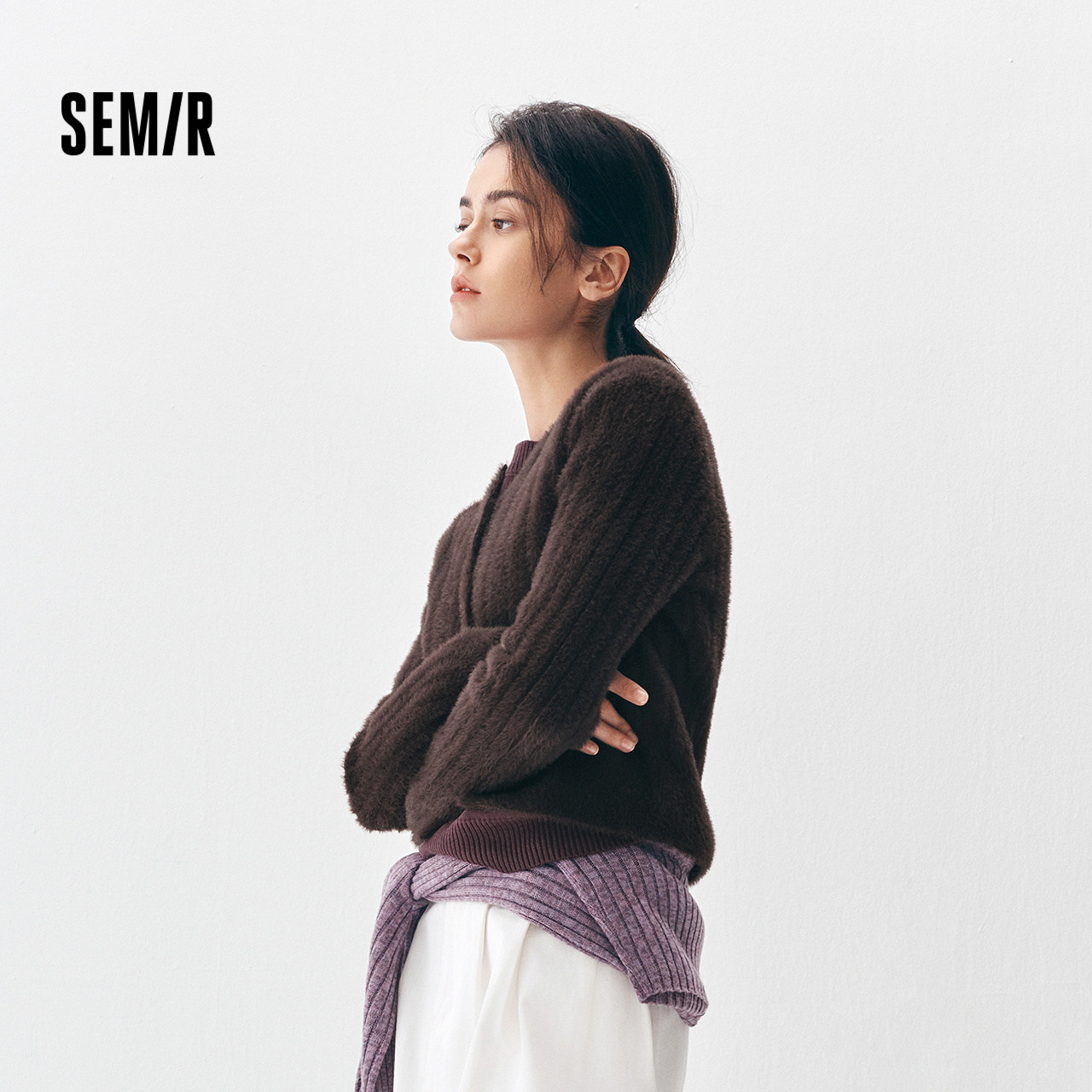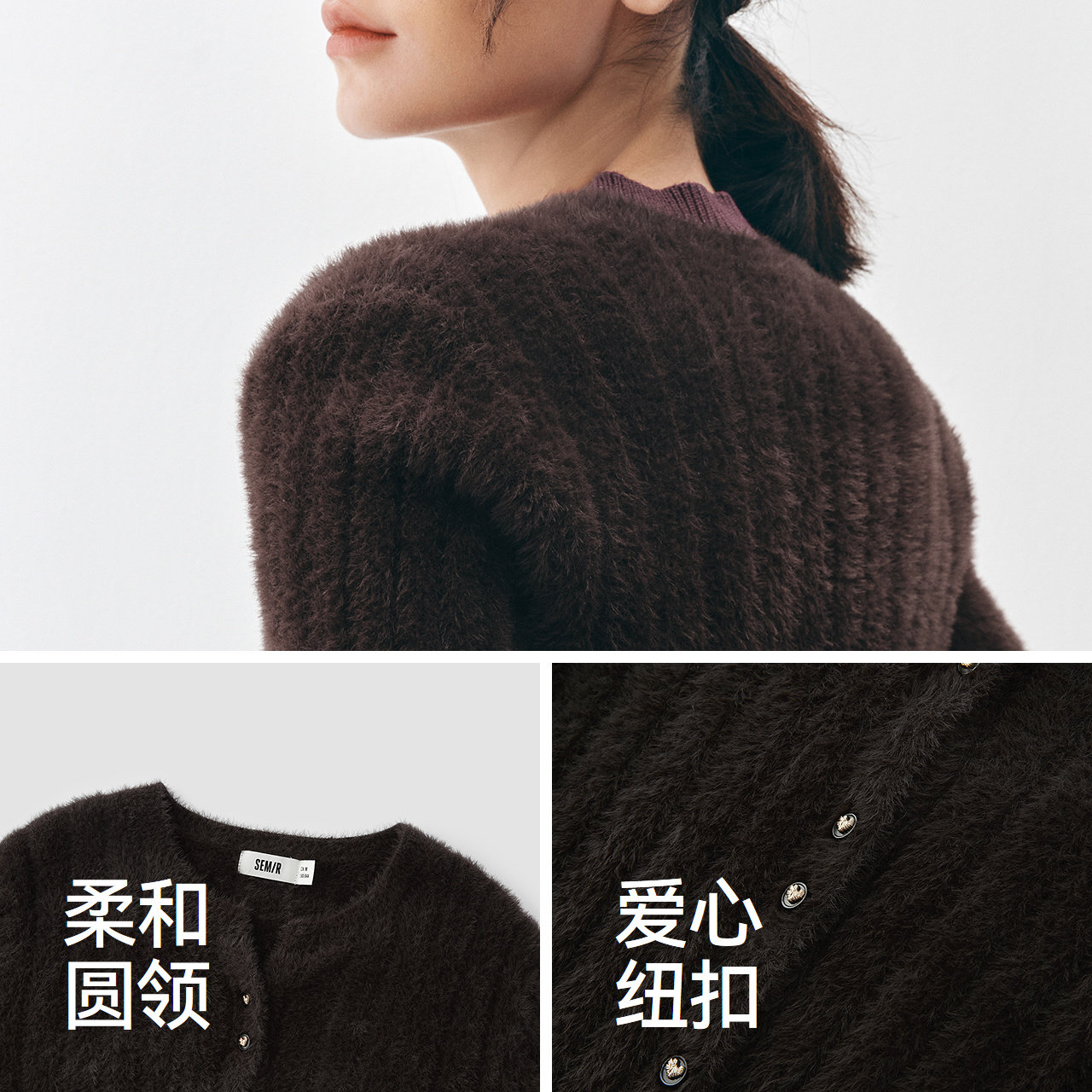 商场同款|森马针织开衫女冬季毛衣修身仿貂毛2025新款小个子毛衫