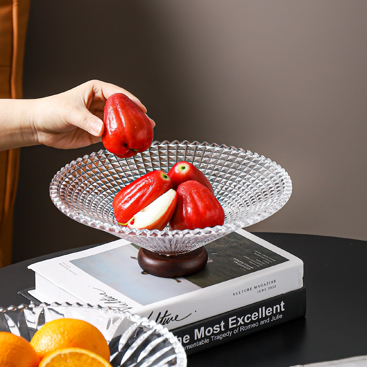 川岛屋水果盘客厅茶几家用轻奢高档中古玻璃果盘高颜值零食摆放盘