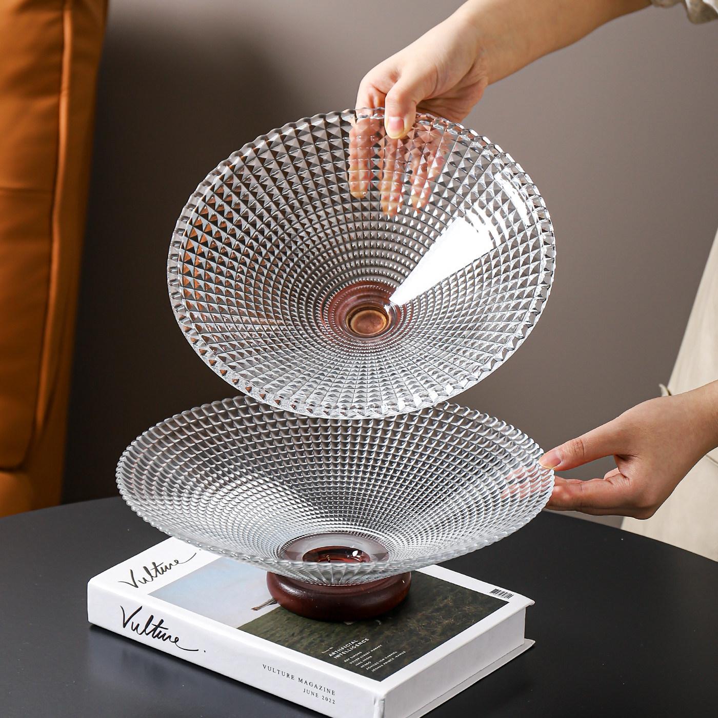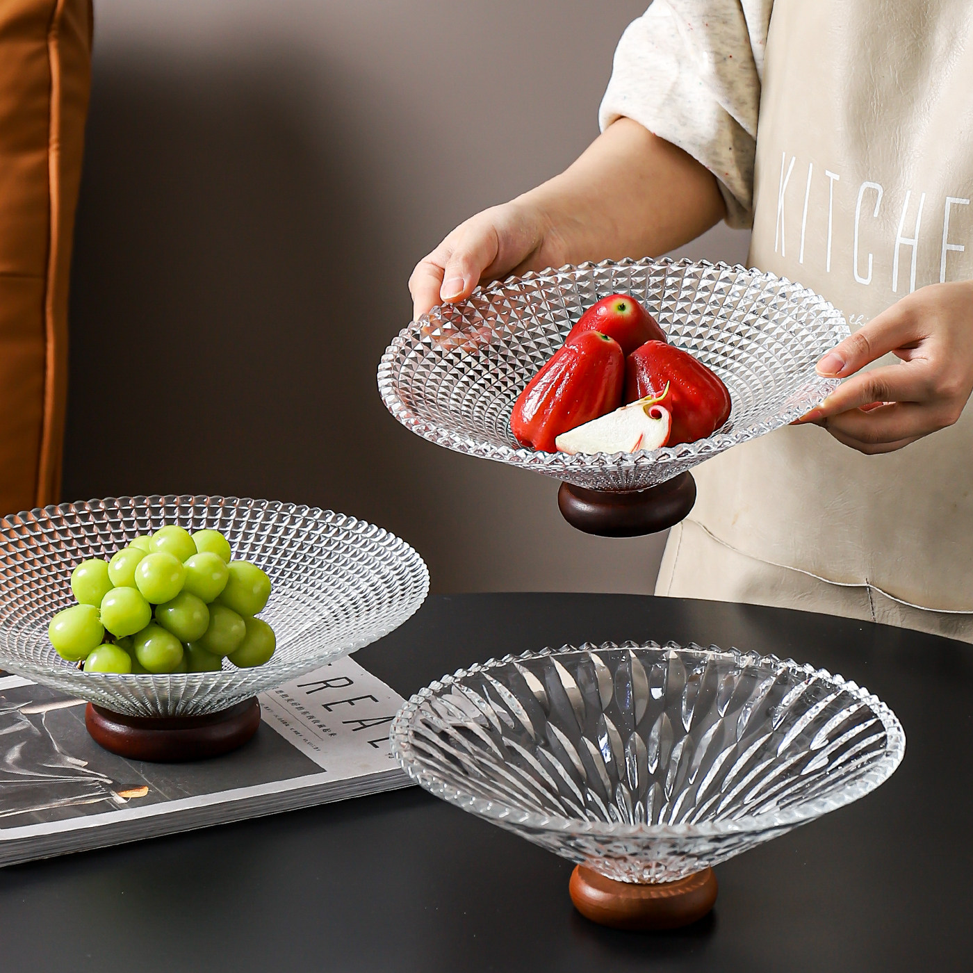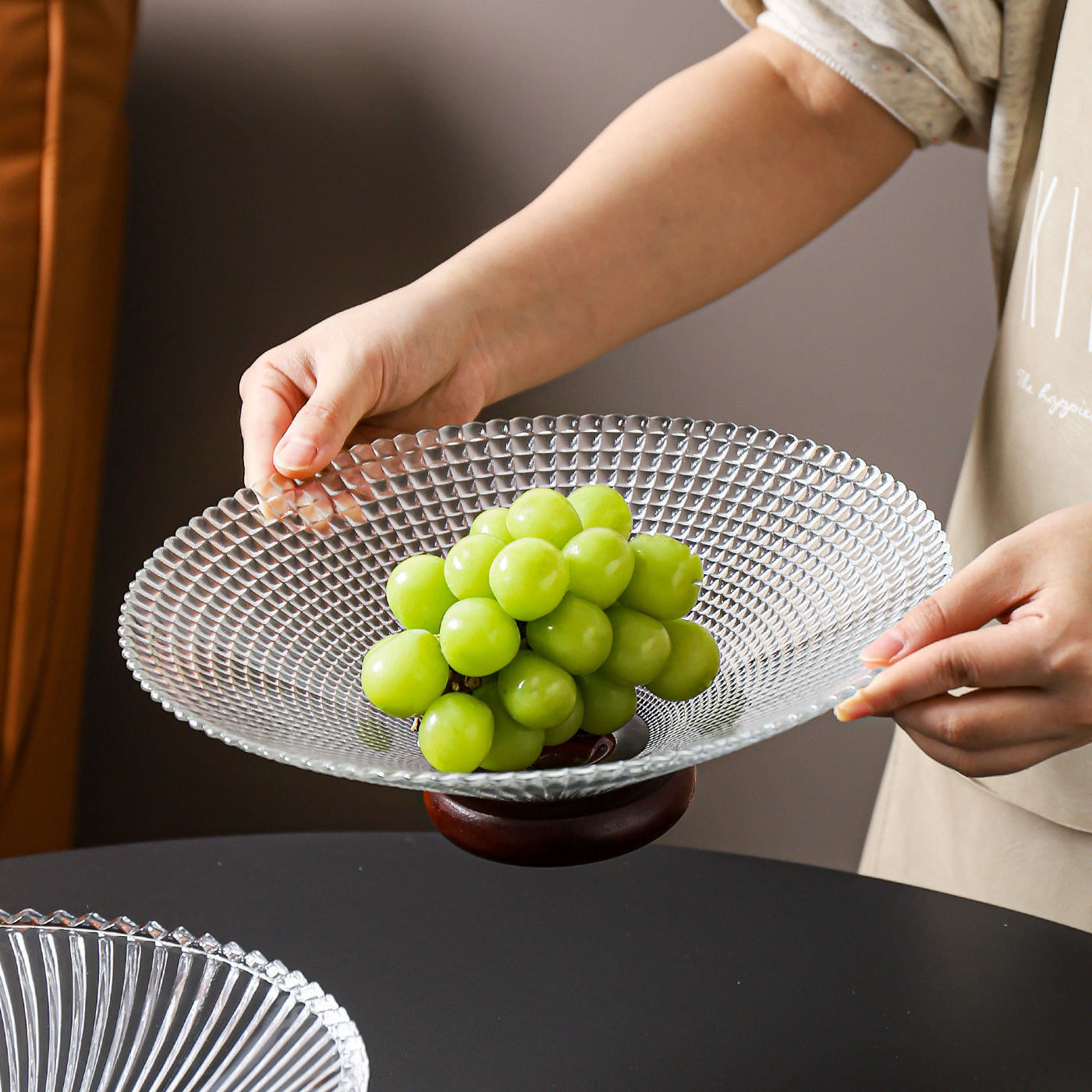 轻奢玻璃水果盘客厅茶几家用高档前台糖果盘子干果坚果零食摆放盘