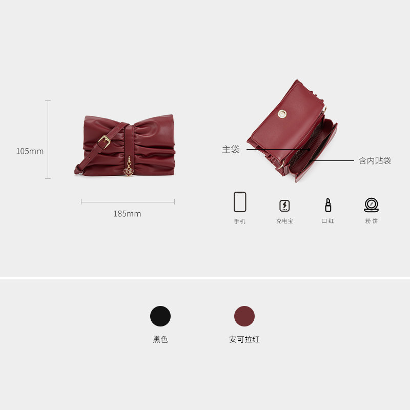 ELLE女包2025新款包包蝴蝶结手拿斜挎包枕头包钥匙包通勤单肩小包