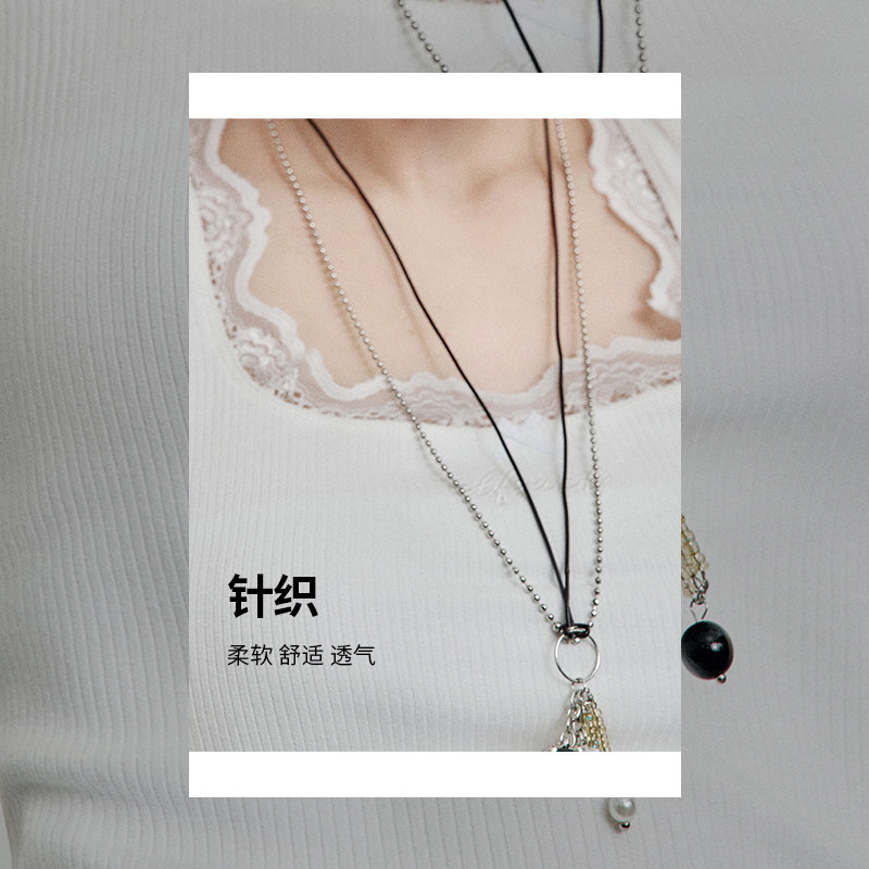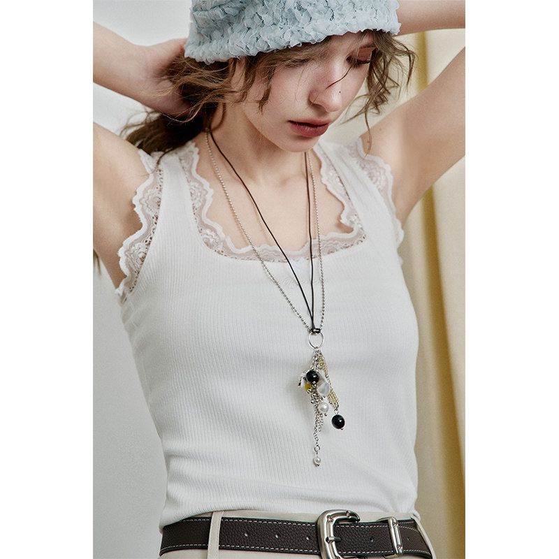 eihey诶嘿秋季刺绣薄纱下摆蕾丝拼接裙摆叠穿打底修身吊带背心女