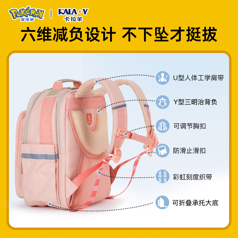 【宝可梦联名】卡拉羊小学生防下坠云朵书包减负护脊轻便皮卡丘男