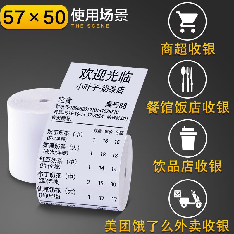 收银纸80x60热敏打印纸80*60mCm厨房小票纸酒店餐厅排队打印纸包
