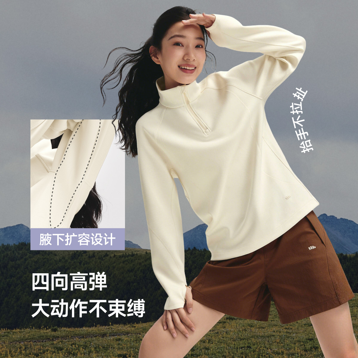 蕉下女士半拉链高弹长袖T恤秋冬白色卫衣保暖上衣秋衣内搭打底衫