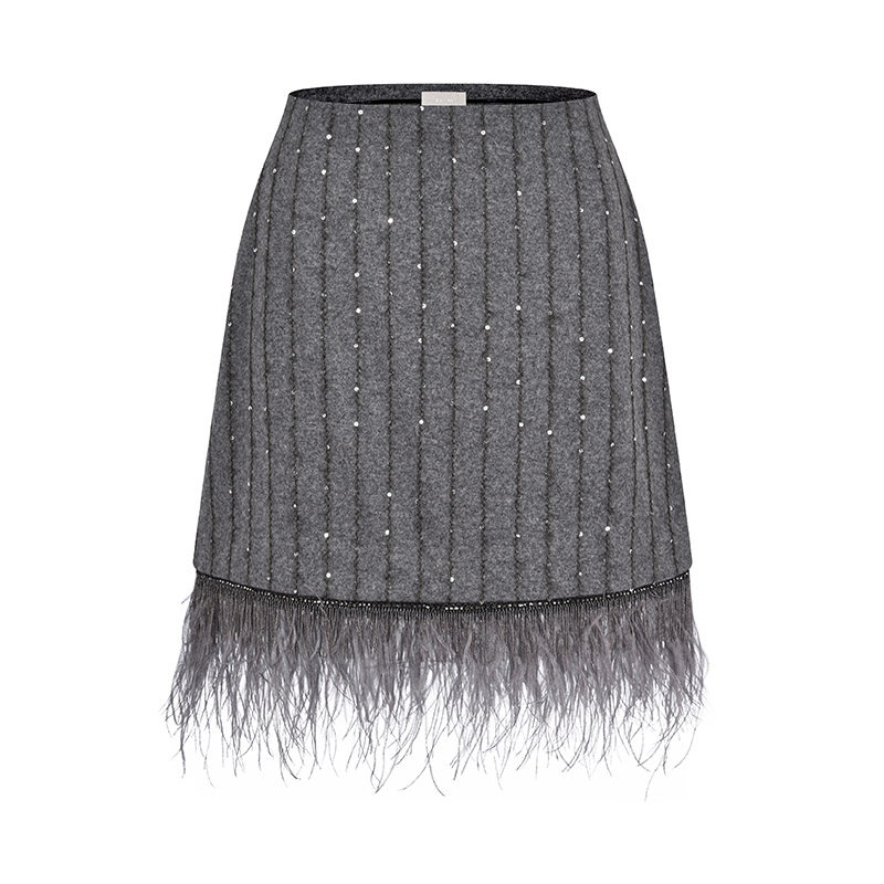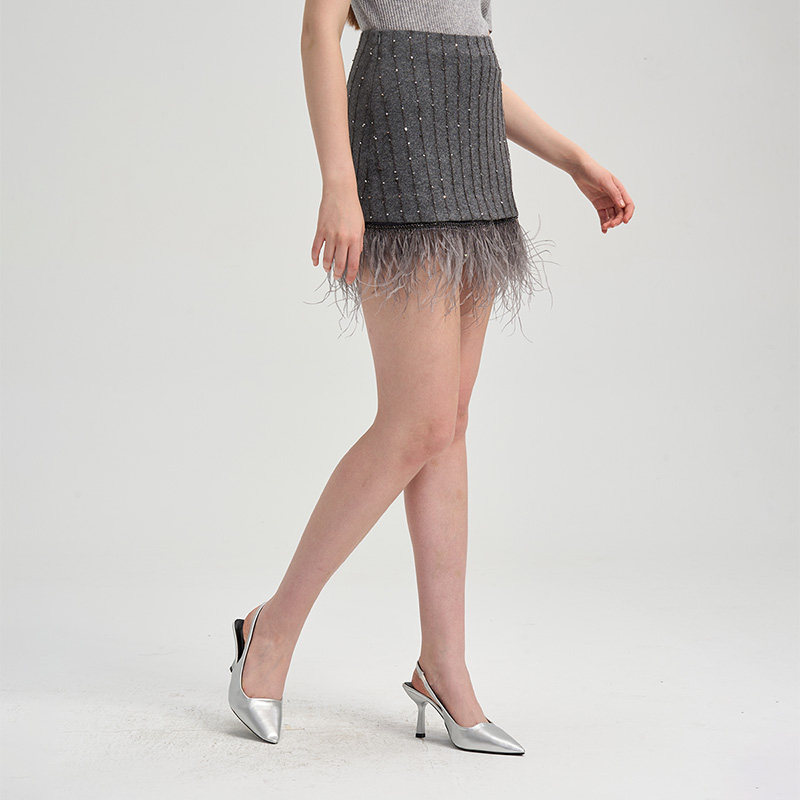 【秀款】RARE威雅女裙 2025秋季新款半裙鸵鸟毛织带灰色包臀短裙