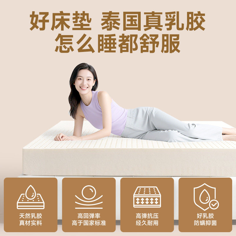 网易严选泰国乳胶床垫天然橡胶软垫儿童床垫双人家用1.8m乳胶垫