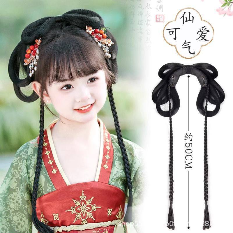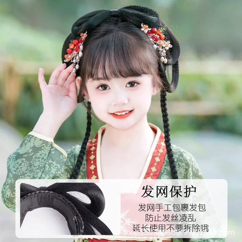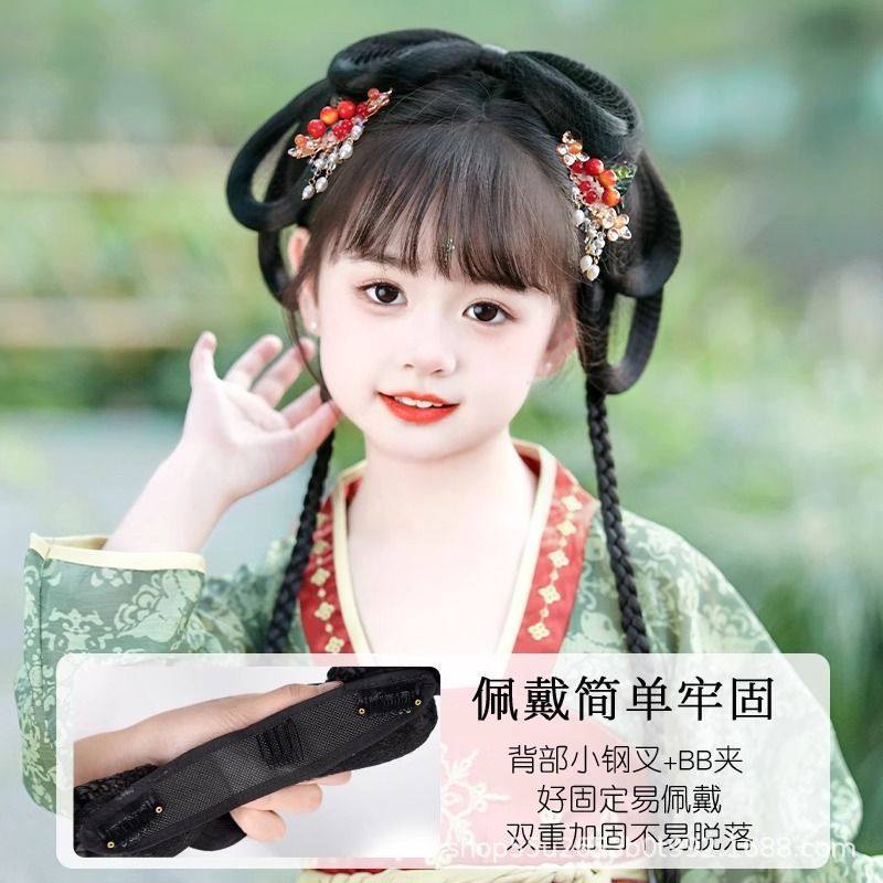 儿童汉服假发蝴蝶结发髻造型古装假发包女童汉服假发头饰假发古风