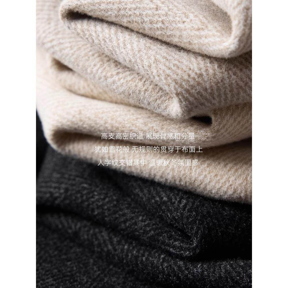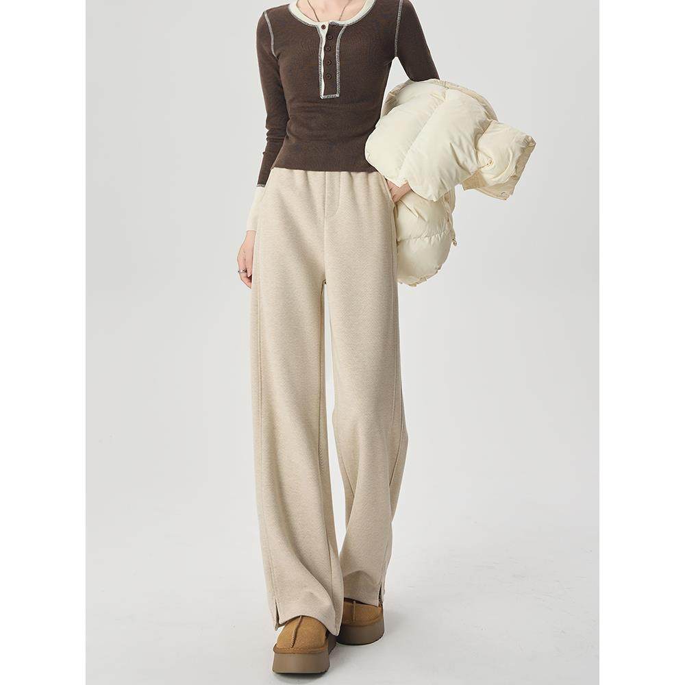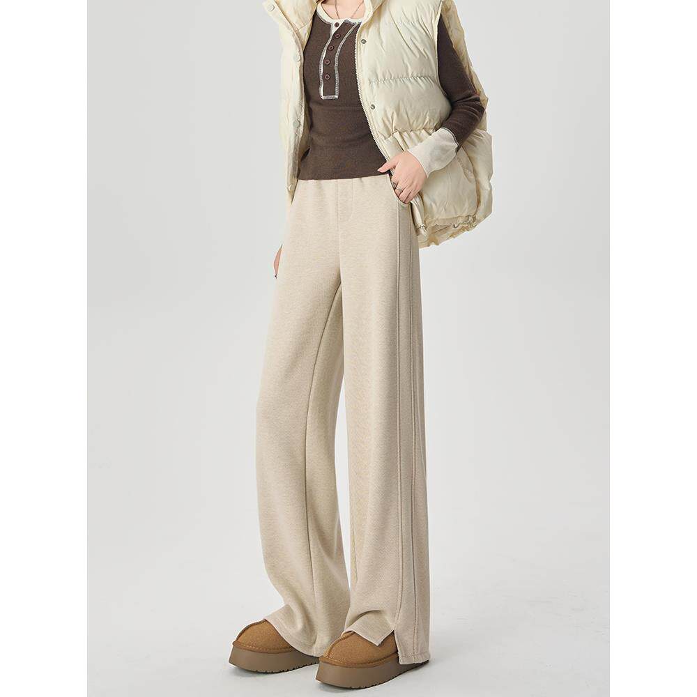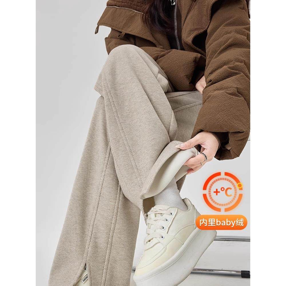 醋酸阔腿裤女秋冬季加绒小个子垂感窄版直筒裤人字纹毛呢裤子大码