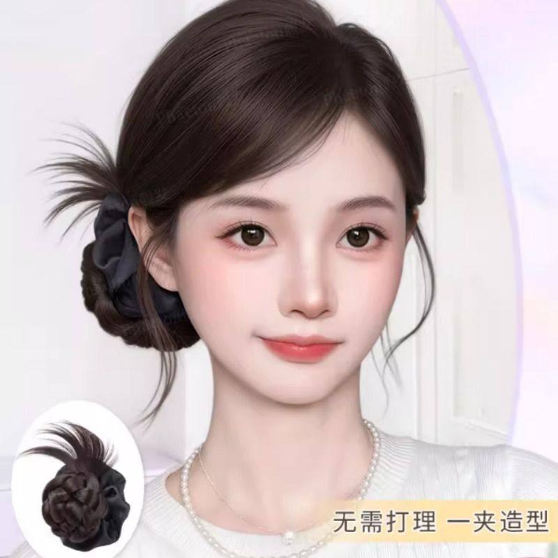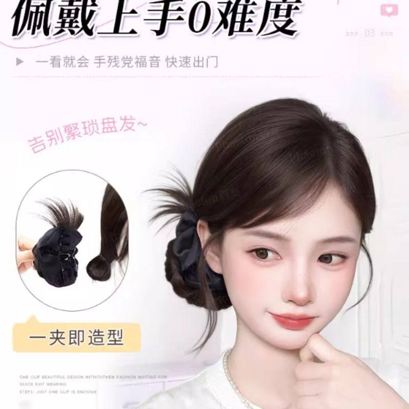 鸡毛侧丸子头假发抓夹气质发圈花苞头盘发神器自然蓬松低扎假发包