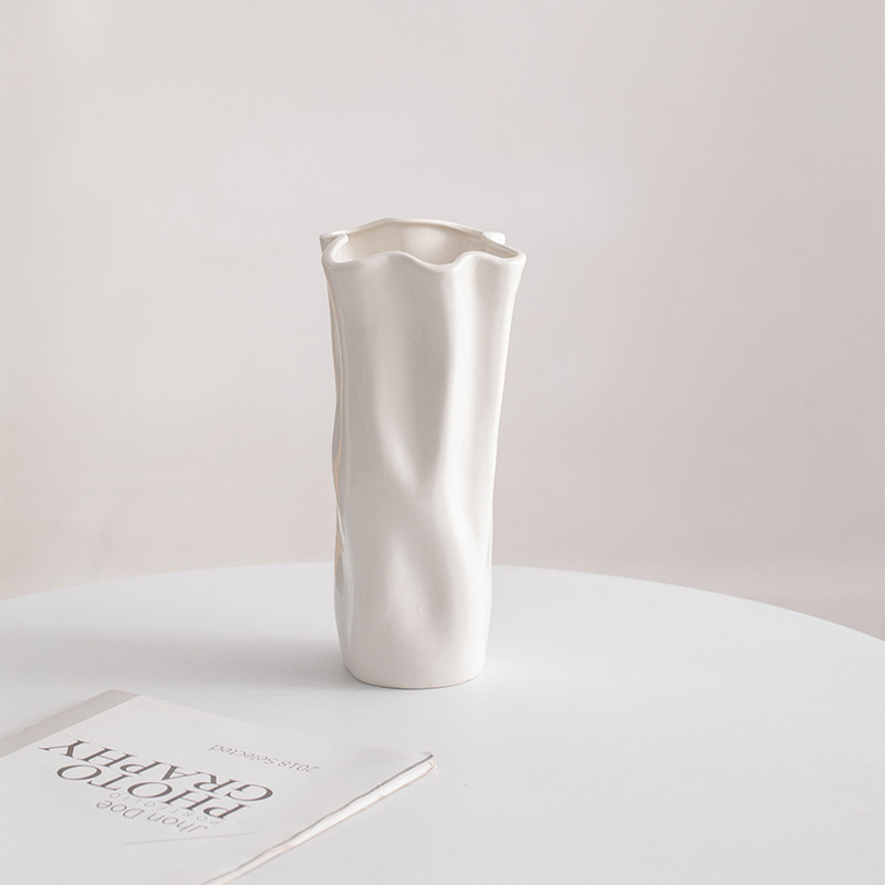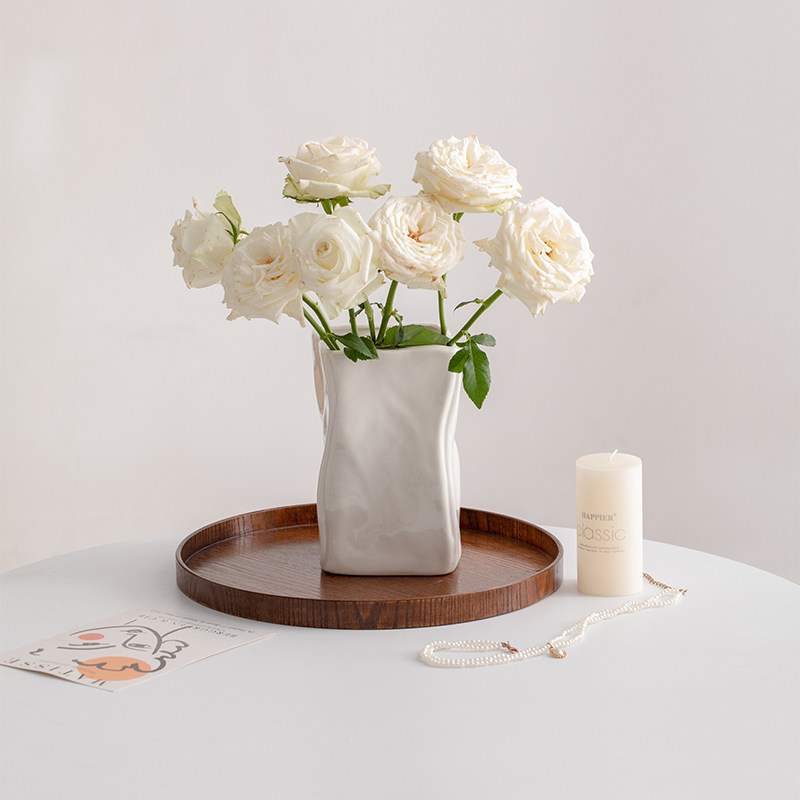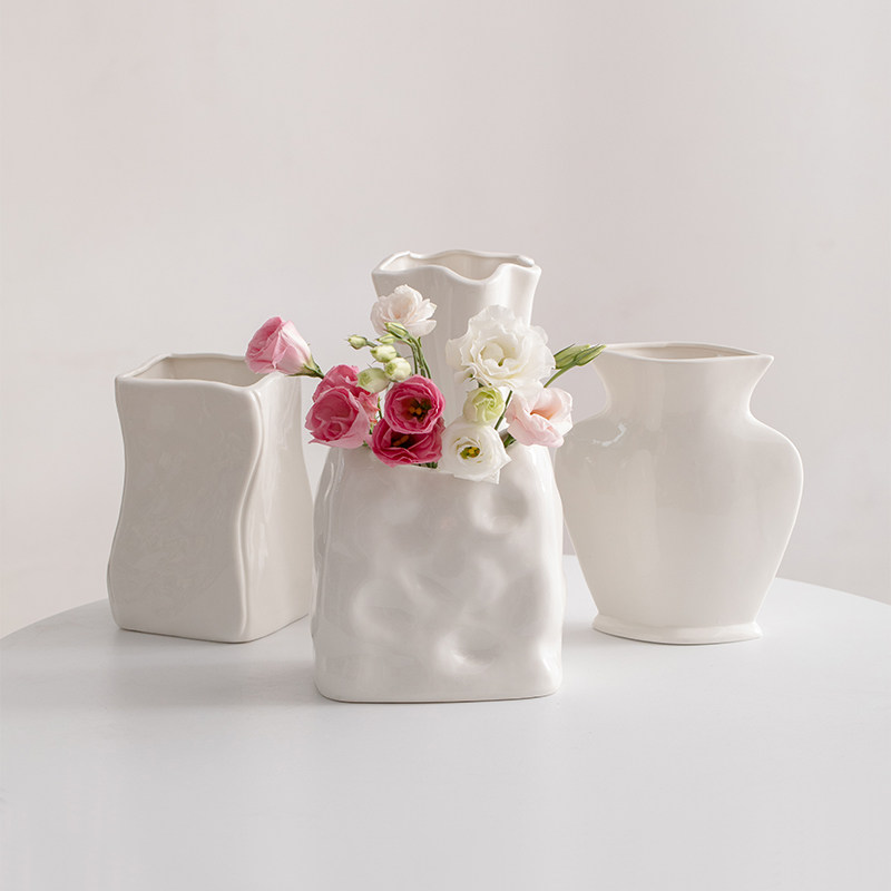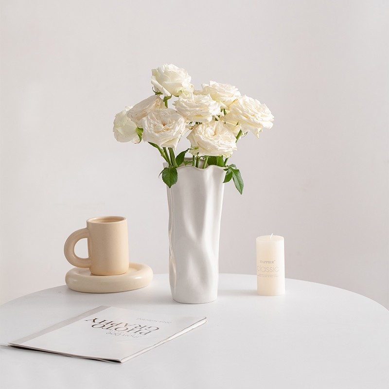 高级感奶油风陶瓷花瓶客厅摆件玄关餐面插花轻奢水培鲜花干花装饰