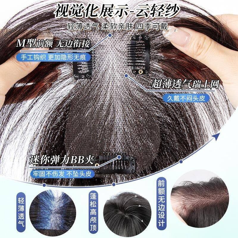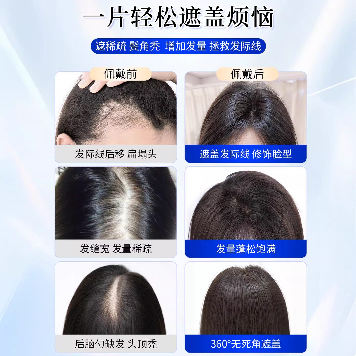 刘海假发女片头顶量真发遮白发蓬松高颅顶自然前额无痕补发片八字