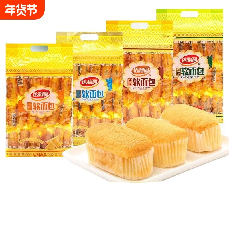 达利园法式软面包360g18枚奶香味香橙味早餐面包蛋糕点心零食品