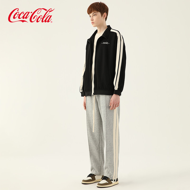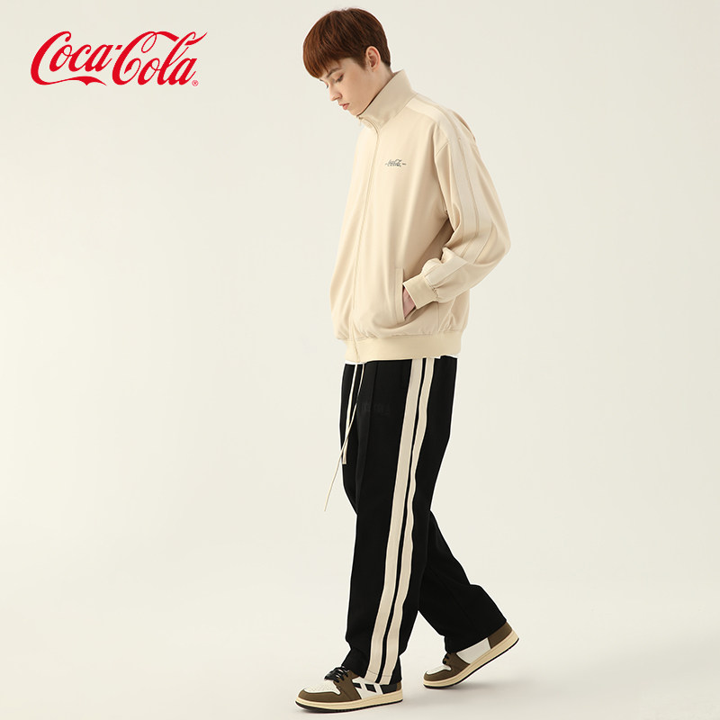 Coca-Cola/可口可乐夹克套装男条纹秋冬款美式潮流秋装衣服两件装