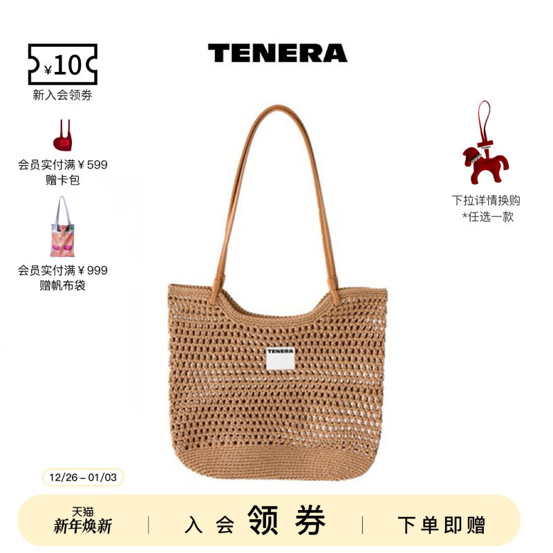 【田曦薇同款】TENERA夏日度假编织水桶包单肩包通勤大容量包包