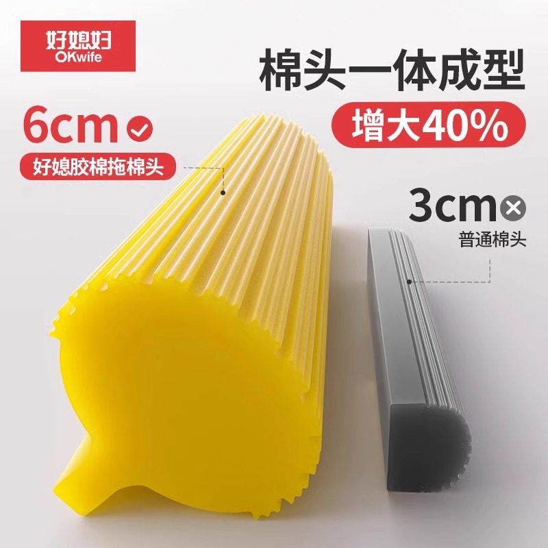 好媳妇海绵拖把家用2025新款卫生间吸水胶棉头大号一拖净免手洗布