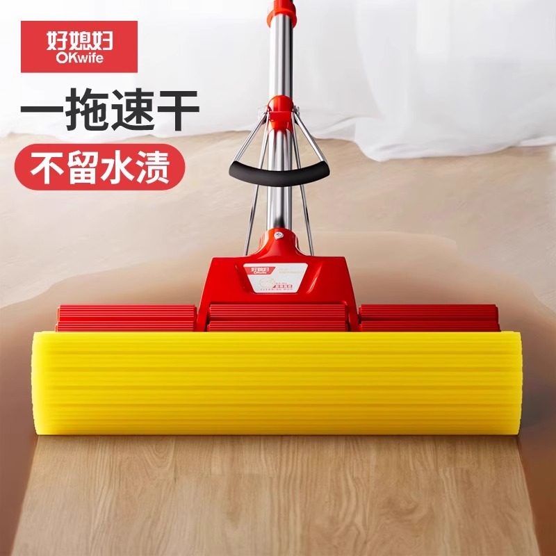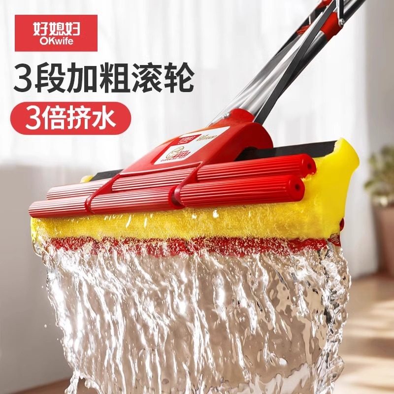 好太太官方海绵拖把家用大号胶棉挤水滚轮超强吸水免手洗耐用结实