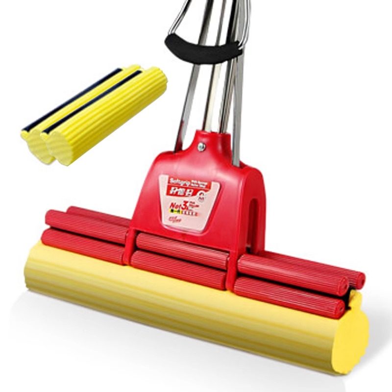 好太太三排吸水海绵拖把家用大号胶棉拖布头免手洗滚轮式挤水墩布