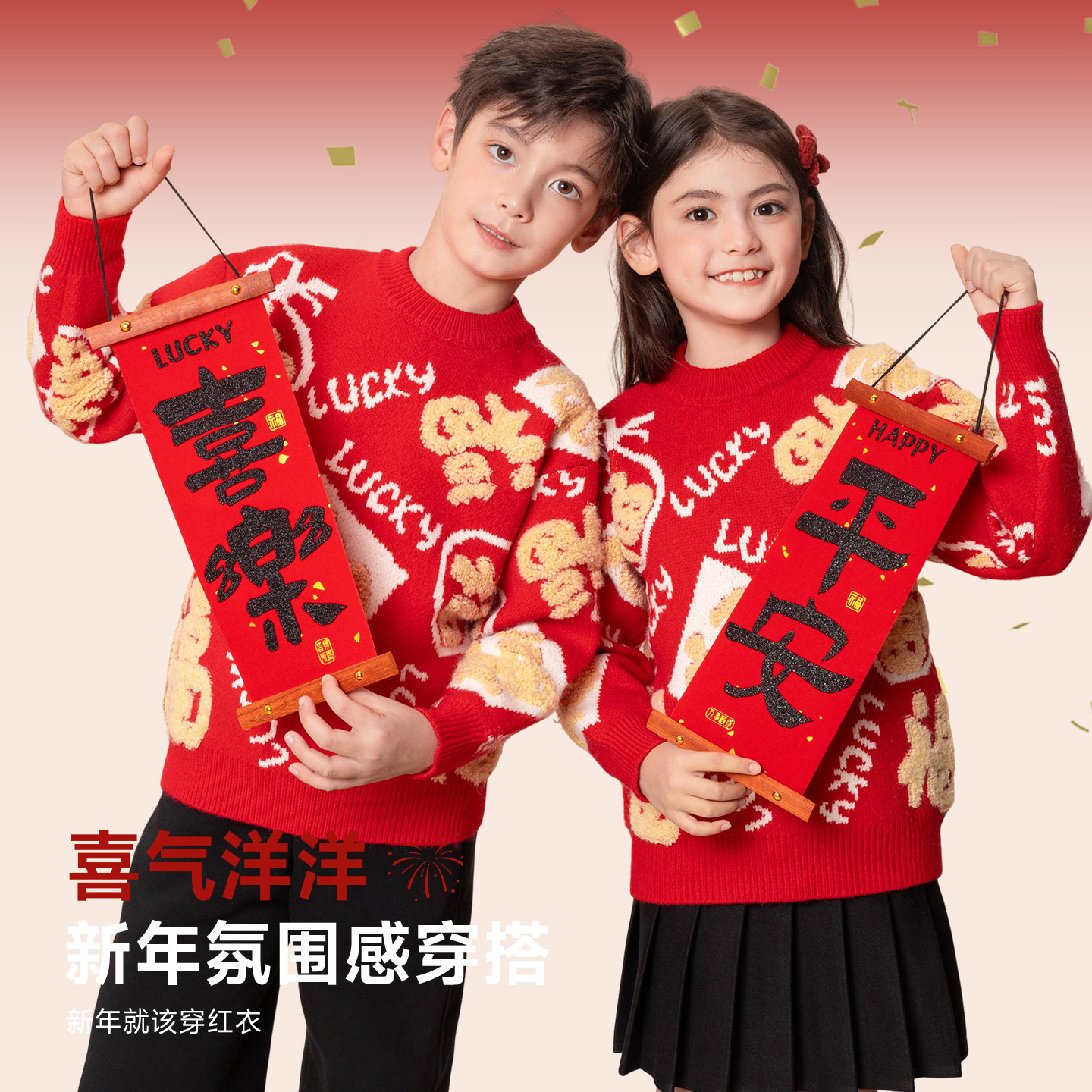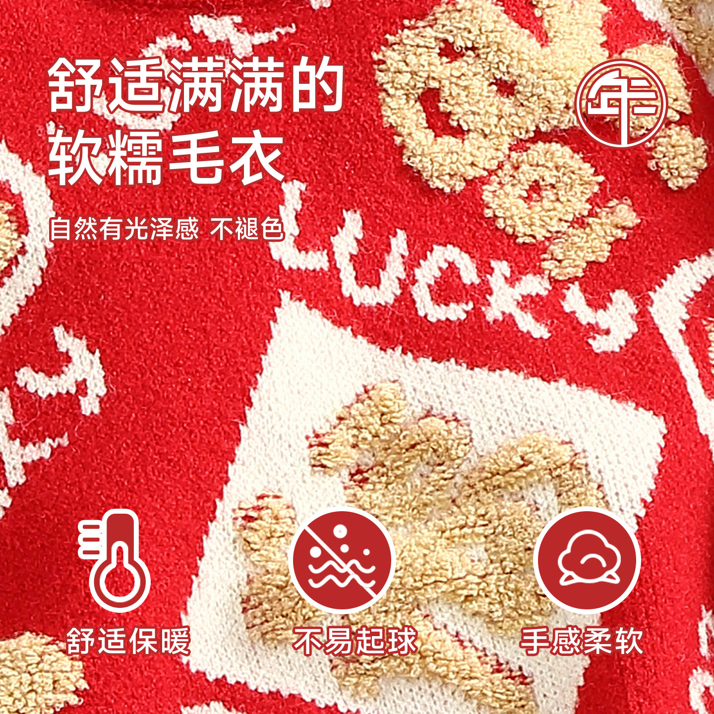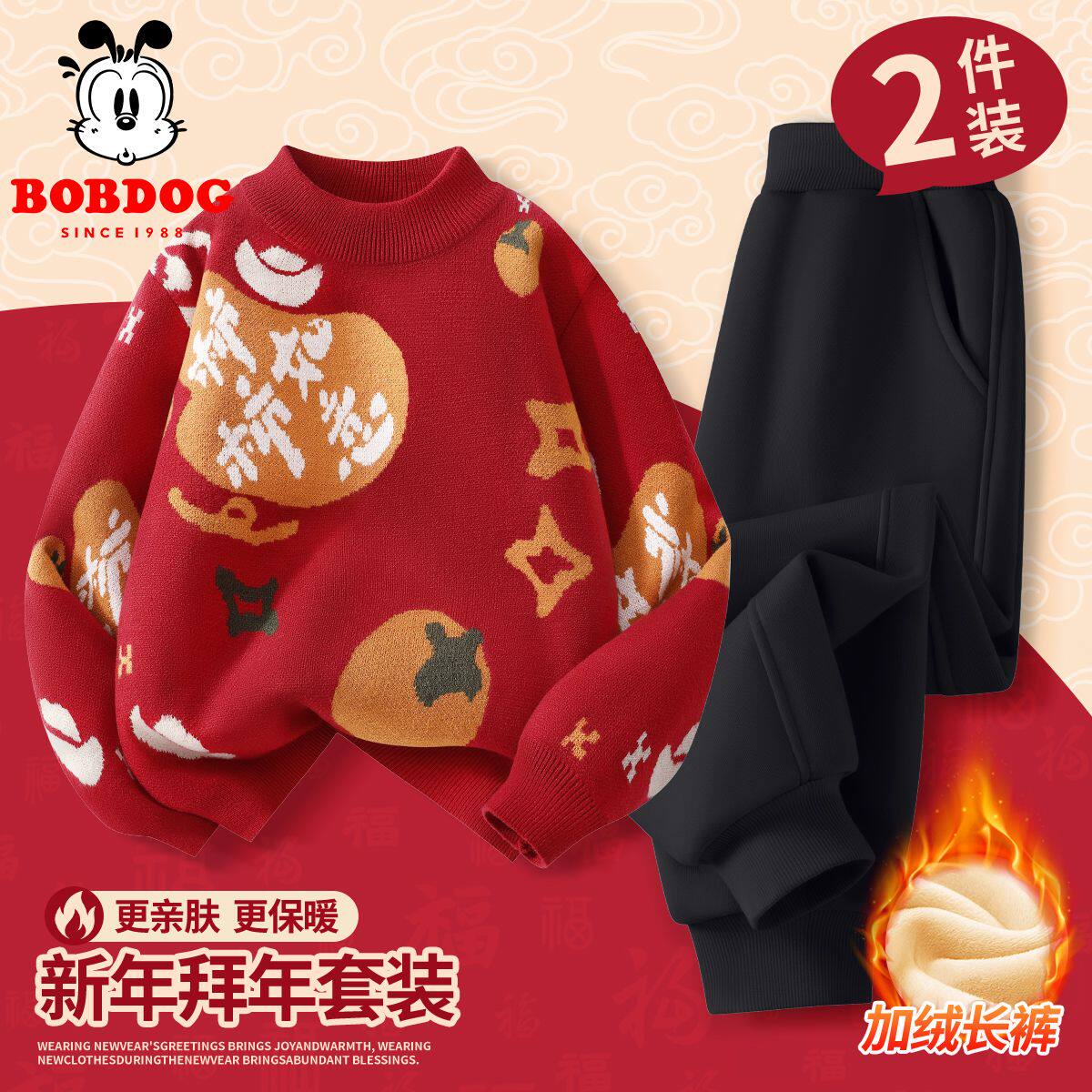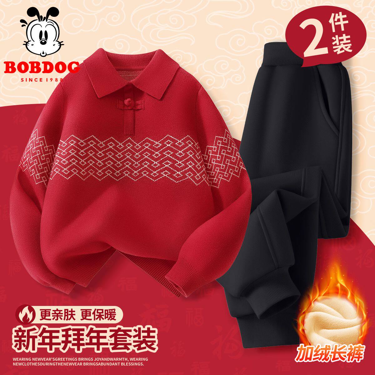 巴布豆儿童拜年服男童新年套装冬季2026新款女童针织衫中国风衣服