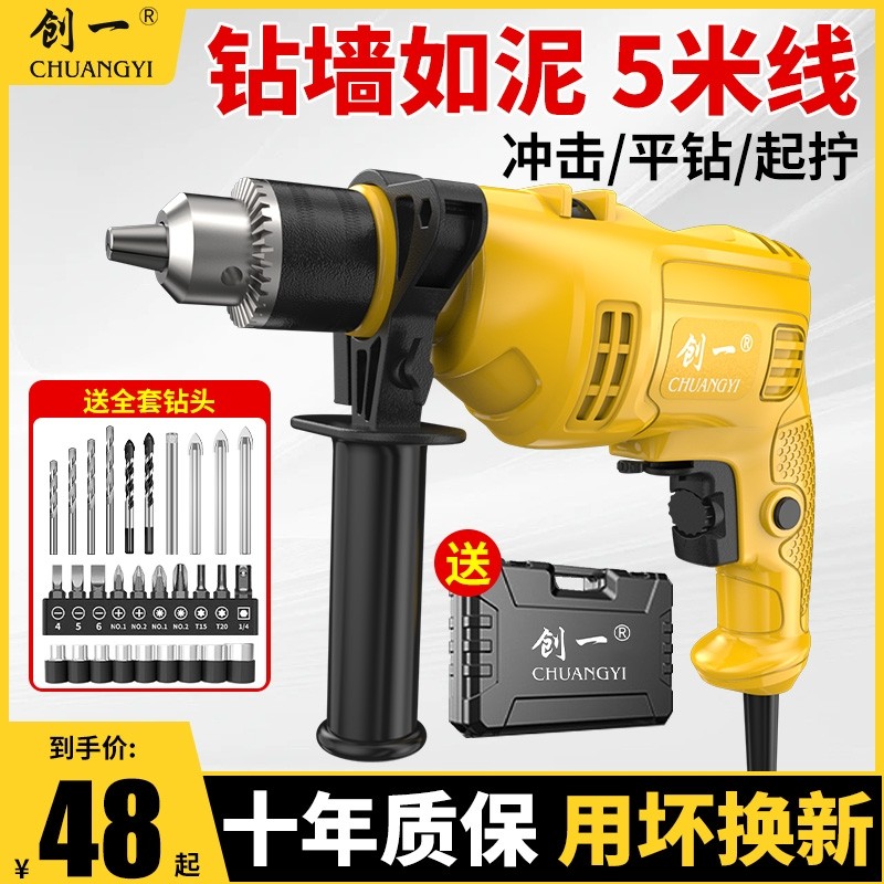 冲击钻多功能手电钻家用小型手枪钻螺丝刀220v大功率打混凝钻墙孔