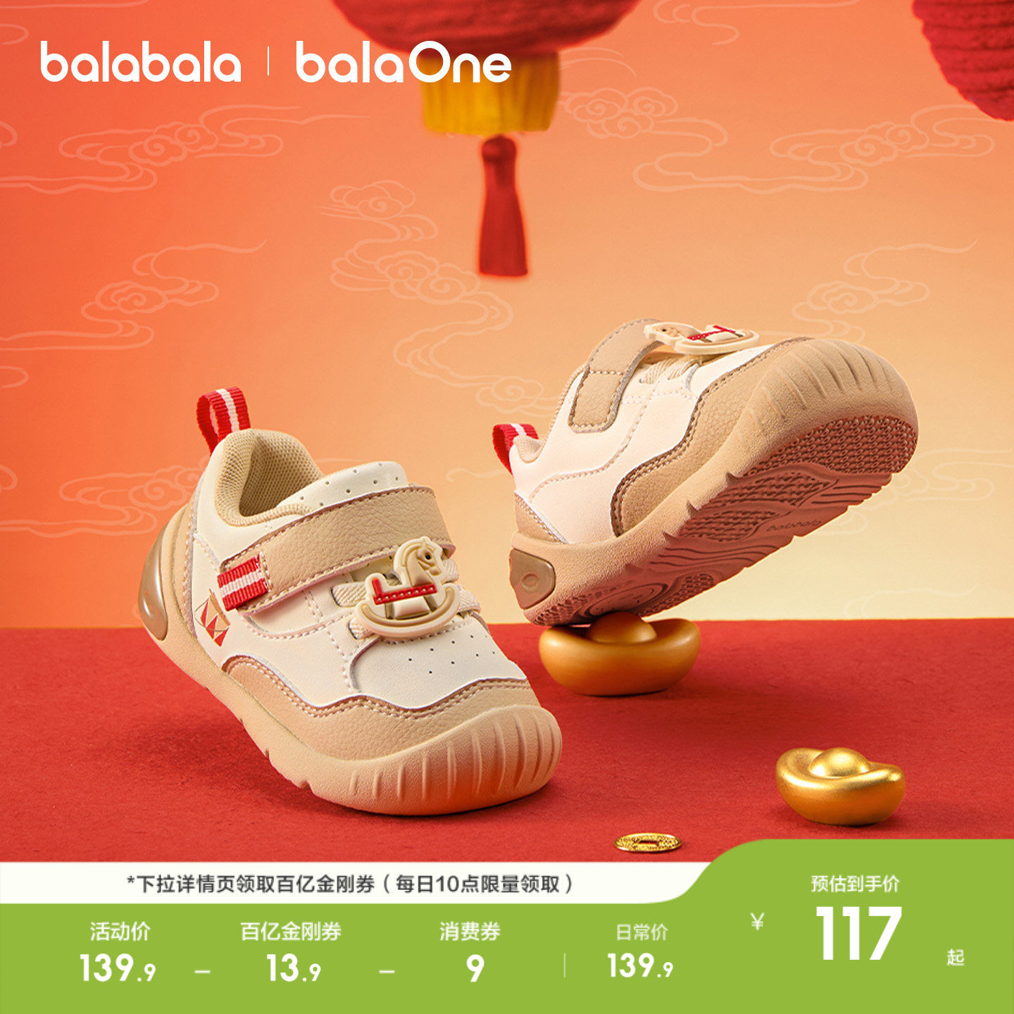 巴拉巴拉童鞋宝宝学步鞋男女童软底鞋婴儿童春秋拜年红色新年鞋子