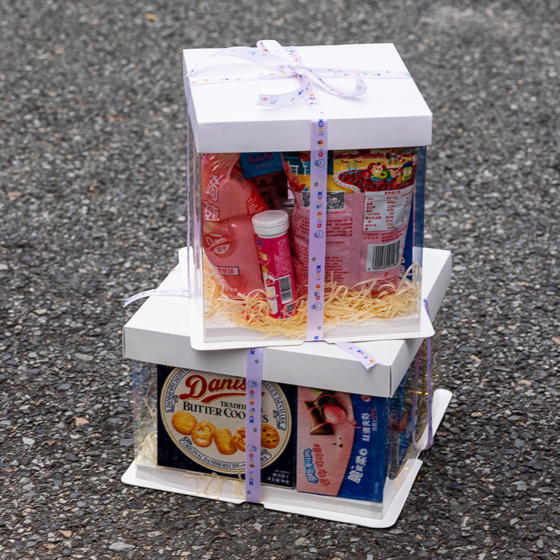 透明生日蛋糕零食礼包盒子包装盒6寸8寸10寸12寸加高小方形双三层